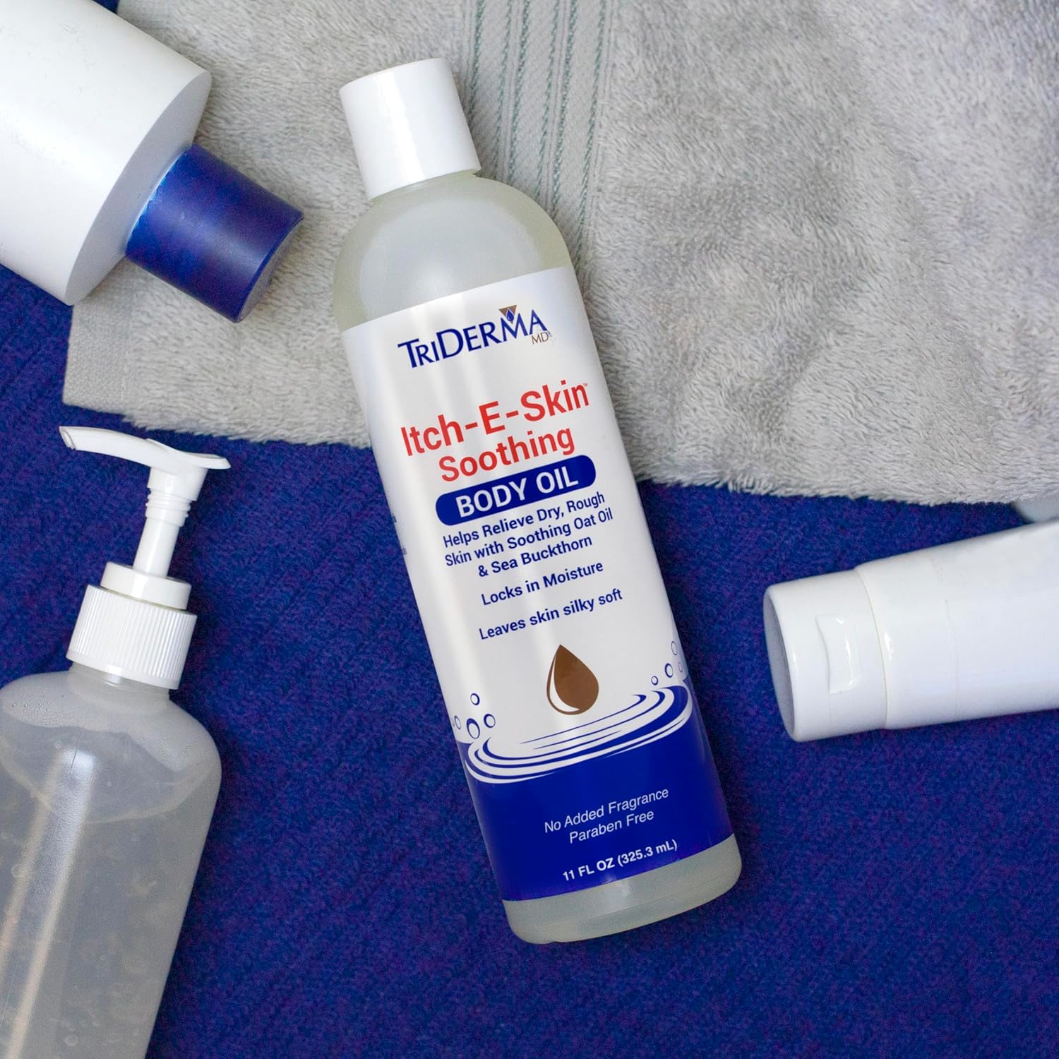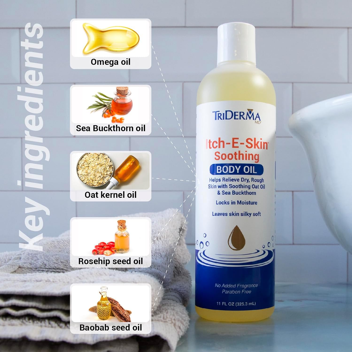 Itch-E-Skin Soothing and Moisturizing Body Oil with Sea Buckthorn Oil, Rose Hip Oil, Oat Oil to Relieve Itchy Skin, Non-Greasy Dry Body Oil, 12 ounces