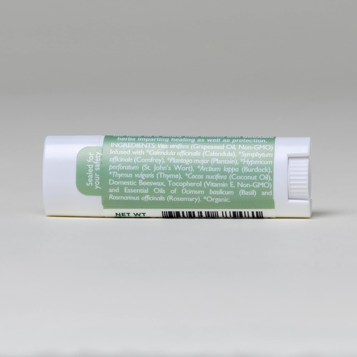 - Before we make our natural lip balm, we infused non-GMO Italia grapeseed oil with organic calendula, comfrey, plantain, st. John's wort, burdock and thyme. This mean our lip balm is deeply healing and soothing as well as moisturizing.