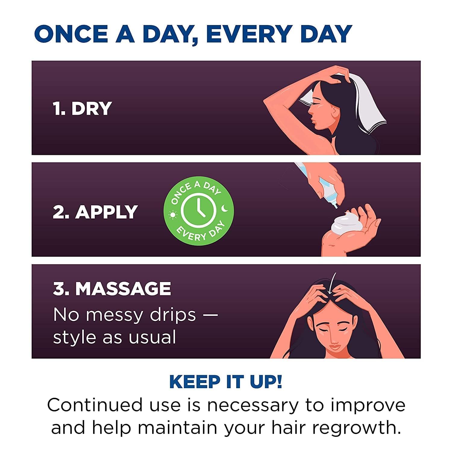 - Easy daily application: apply half a cap full of no-mess unscented 5% minoxidil foam (hair loss treatment for women) directly to your scalp once a day; integrates into your daily hair care routine for consistent results