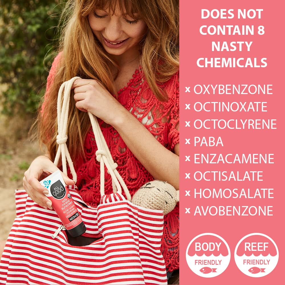 - CORAL REEF FRIENDLY: All Good natural sunscreen meets broad-spectrum standards and reef-friendly criteria. No chemical UV absorbers, parabens, or harmful additives like octinoxate or oxybenzone.
