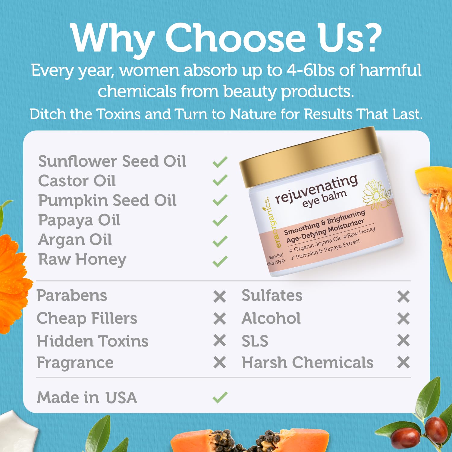 USDA Organic Eye Moisturizer Cream - Rejuvenating and Nourishing Age Defying Under Eye Balm - Natural Eye Cream for Sensitive Skin With Jojoba Oil, Agran Oil for Puffiness, Fine Lines and More