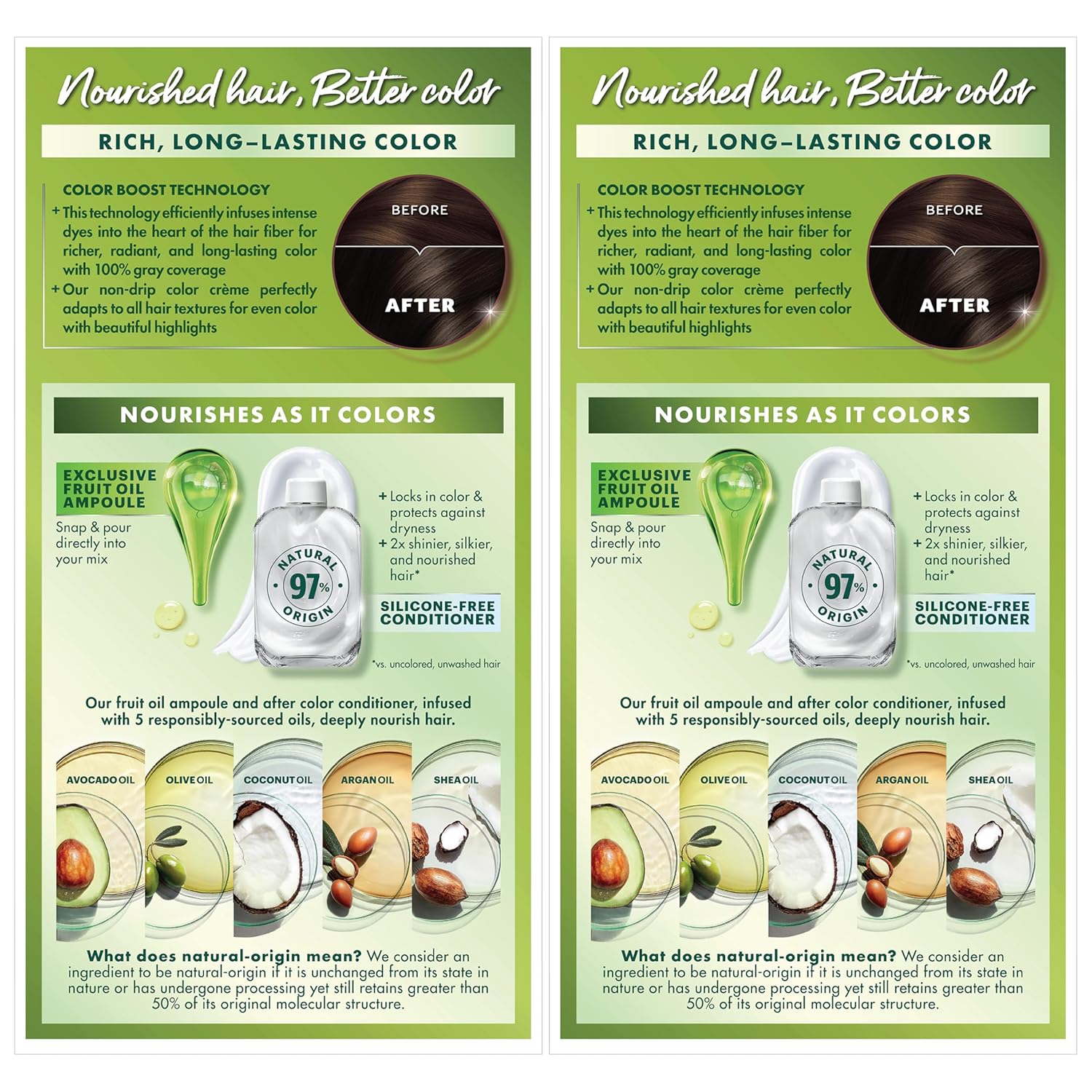- Hair Dye Kit: The only hair color with a separate fruit oil ampoule that you snap & pour directly into the mix; Follow hair dye with our after color hair conditioner, infused with a blend of 5 fruit oils: avocado, olive, shea, argan & coconut oil