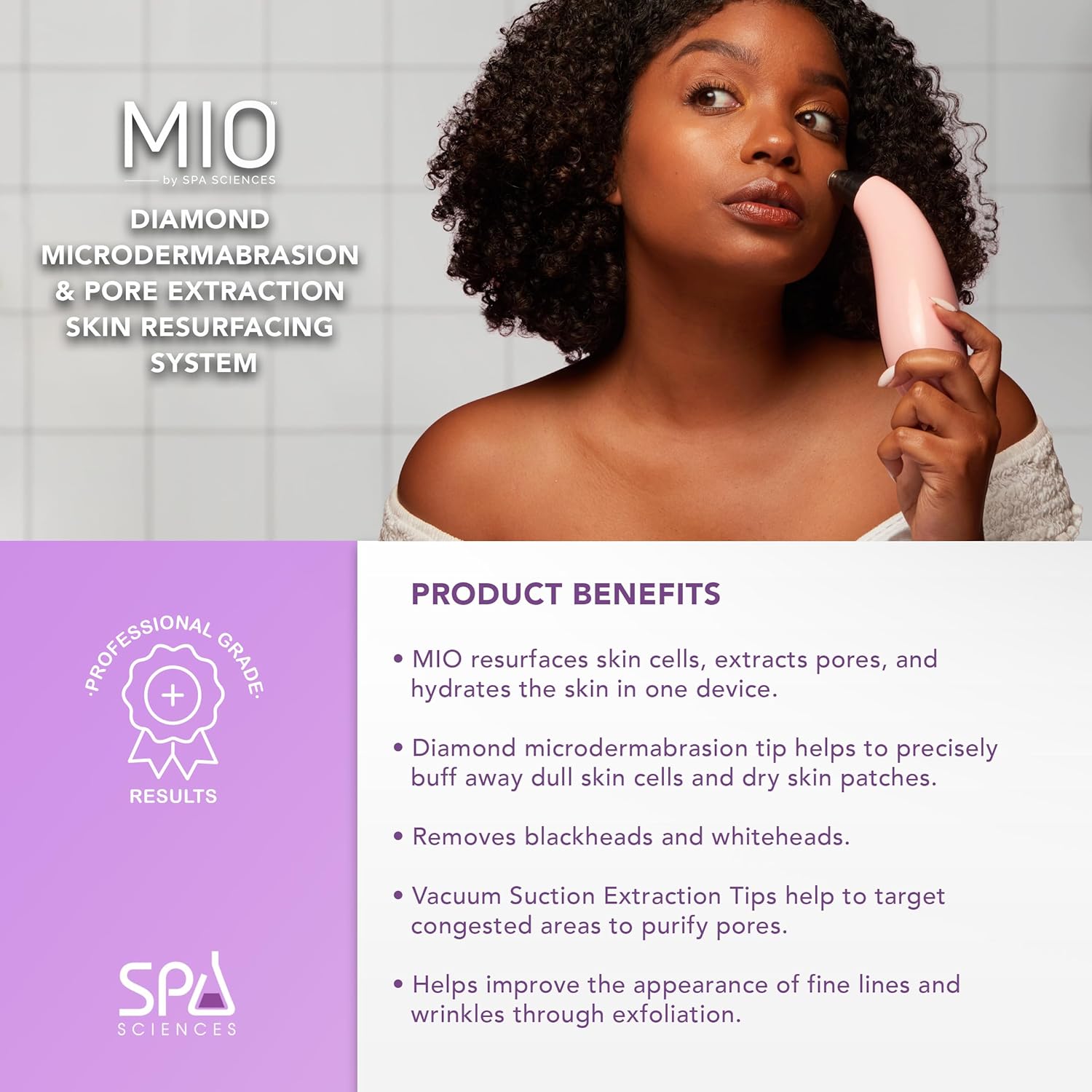 Spa Sciences - MIO - Diamond Tip Microdermabrasion Blackhead Remover, Pore Cleansing, & Resurfacing System - Reduces Acne Scars, Wrinkles, and Exfoliates for Clearer Skin
