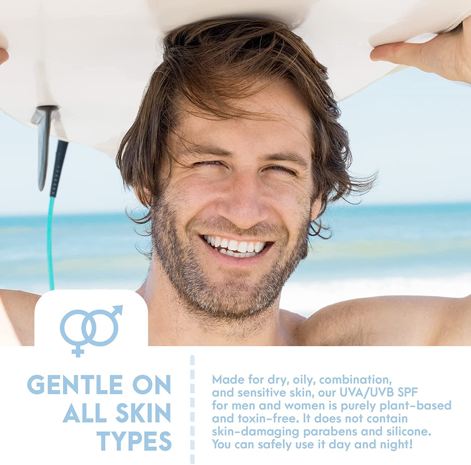 - BLOCKS HARMFUL SUN RAYS - Get full-on sun defense with a body and face sunscreen! This SPF lotion shields your skin with a physical barrier made of active minerals, zinc oxide. It encourages safe and even tanning by reflecting UVA/UVB rays like a mirror.