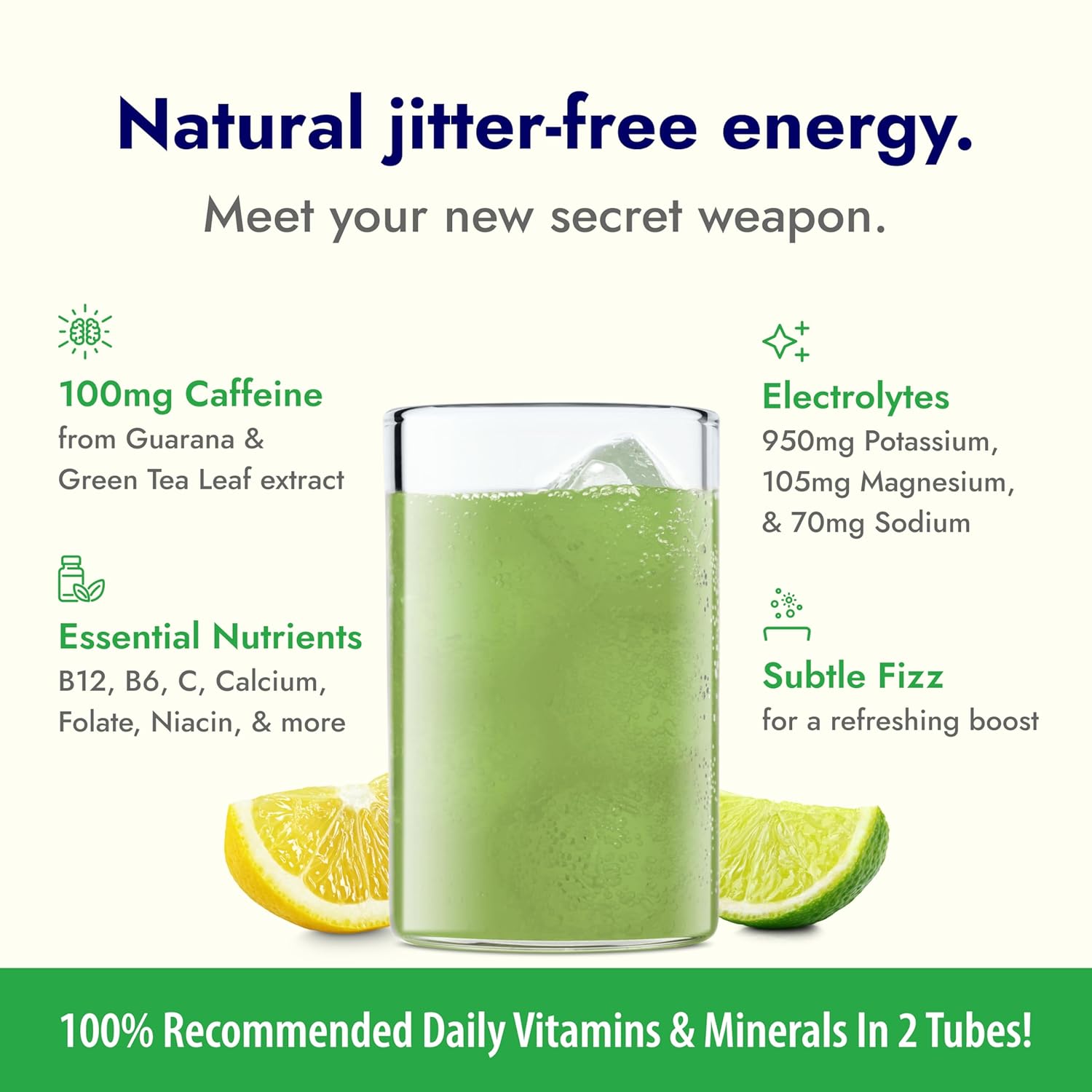 - Packed with Vitamins and Natural Electrolytes – Our comprehensive formula contains 100% of recommended daily vitamins in two tubes, including 500mg of Vitamin C, 950mg of Potassium, 2500mcg of B12, and 105mg of Magnesium. Zero sugar, no artificial flavors or colors, no preservatives, and gluten free.