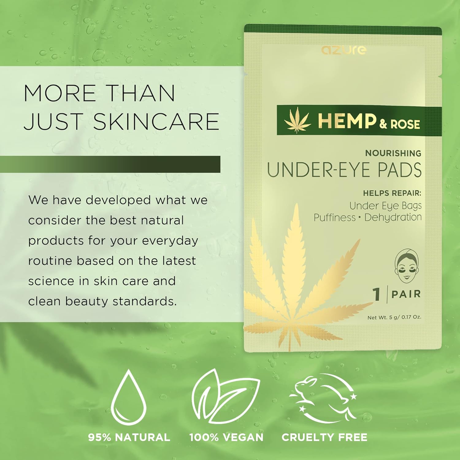 AZURE Hemp & Rose Nourishing Under Eye Pads - Toning, Hydrating & Anti Aging Eye Mask Patches - Reduces Fine Lines, Wrinkles, Dark Circles & Puffiness - Skin Care Made in Korea - 5 Pairs