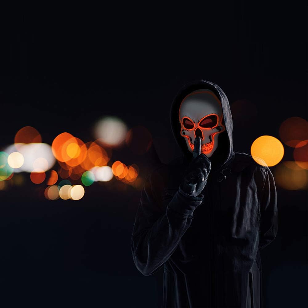 • 【Halloween Any Party Occasions】A scary face and pose will let you get more candy on halloween.EASY TO USE BY TURN ON LIGHT(YOU NEED EXTRA BUY BATTERY,IT NOT INCLUDE)The Mask Can be used on many occasions, such as Party, Rave Parties, Discos, Clubs, Halloween,Birthday, Festivals and other Events.
