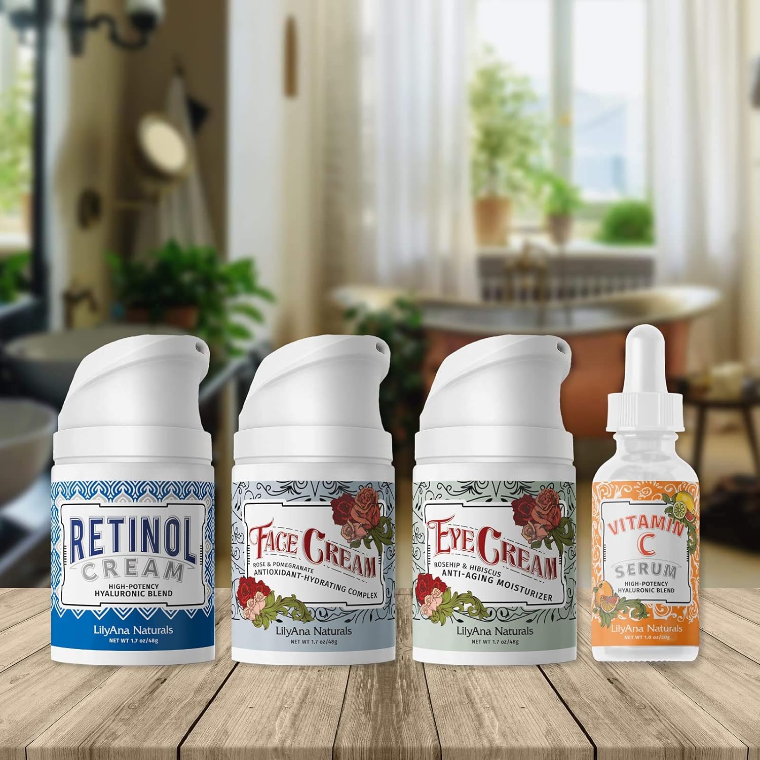 - 4 Piece Skincare Gift Set: This skin care set includes 4 LilyAna Naturals skin care products that come in a giftable box perfect to nourish skin during the harsh winter months. Included in this skin care kit are our top 4 facial skin care routine products: Retinol Cream, Vitamin C Serum, Eye Cream and Face Cream