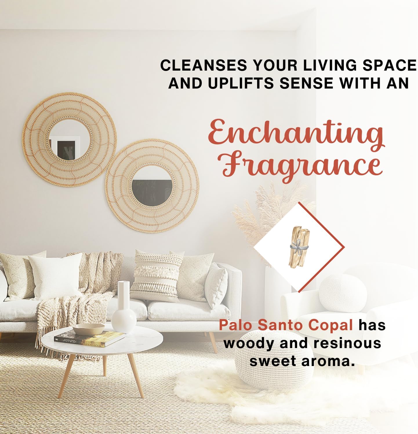 - CALMING AROMA- Grainy Palo Santo with Rich Copal aroma, rejuvinates the atmosphere.