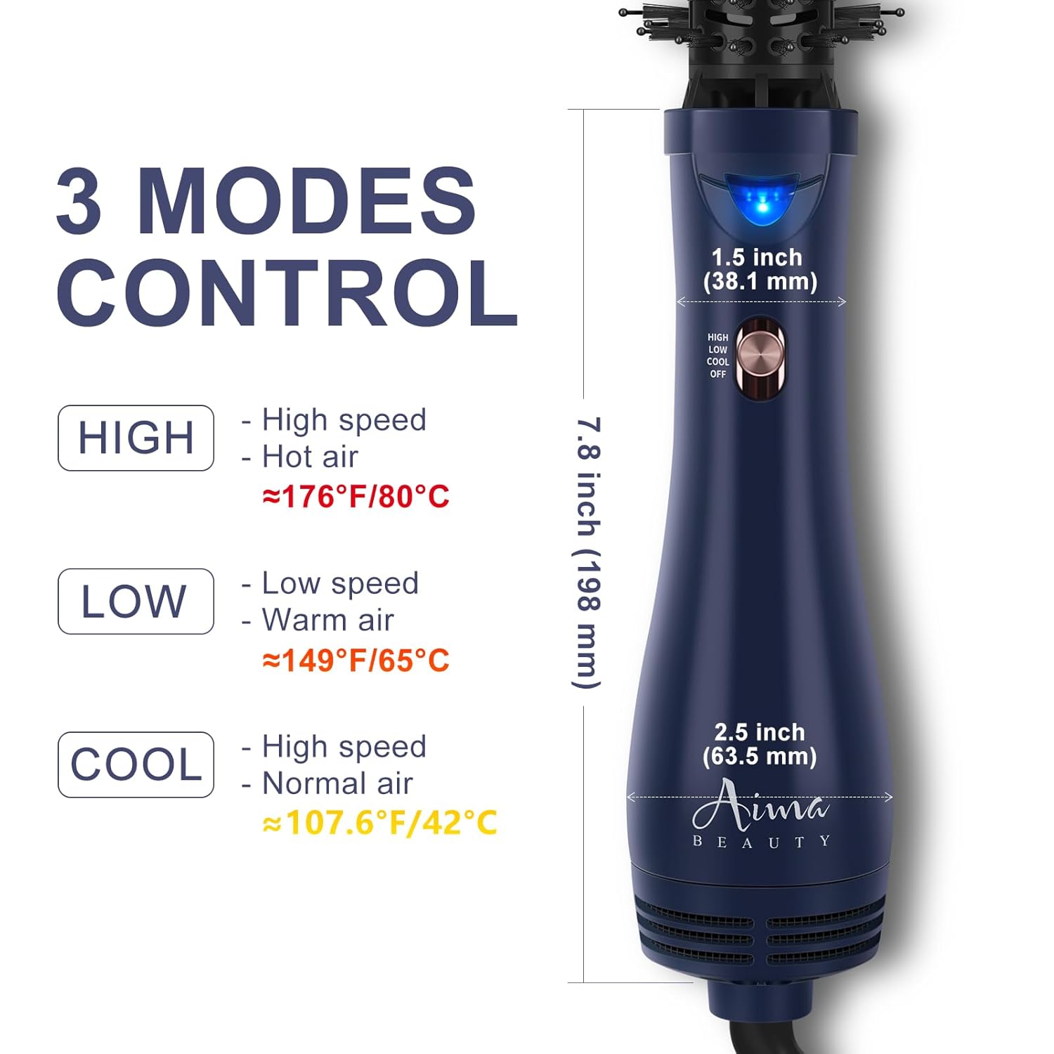 - 3 TEMPERATURE MODES - Our hair dryer brush is equipped with 3 modes for you to choose from, LOW/ COOL/ HIGH. Low Setting for fine or thin hair; Cool Setting for easily locking in the style; High Setting for dry hair faster. It is suitable for beginners and hairdressers.