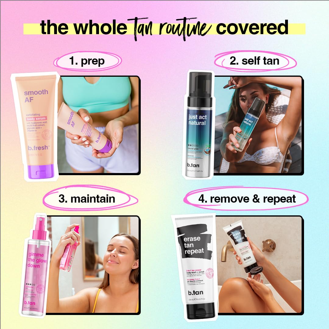 b.tan Clear Self Tanner Bronzing Water Foam | Just Act Natural - Best 1 Hour Express Sunless Tanning Mousse, Dark, Transfer-Free, Enriched With Coconut Water & Vitamin E, Face & Body, 6.7 Fl oz