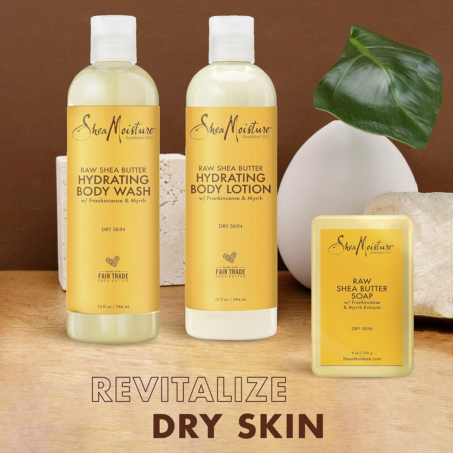 - Formulated with Raw Shea butter, Frankincense and Myrrh, this SheaMoisture skin care kit revitalizes dull looking dry skin while leaving skin soft, silky and beautifully hydrated