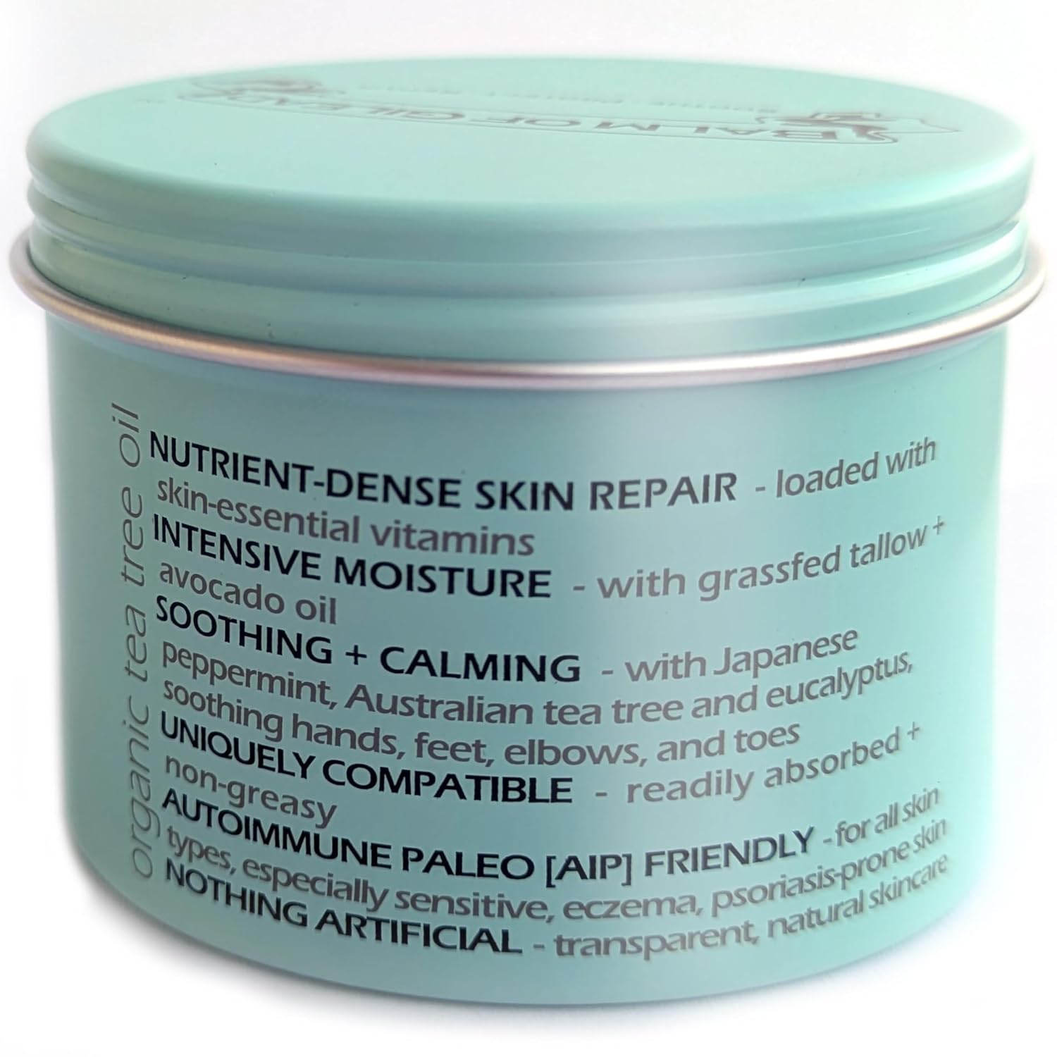 - 🌿 Soothing and Calming Moisture – A nourishing foot and hand cream enriched with peppermint, Australian eucalyptus, and tea tree oils. This refreshing botanical formula helps soothe dry, rough, or irritated skin while delivering fast-absorbing hydration. Perfect for daily use on tired feet and overworked hands, this intensive tea tree balm leaves your skin feeling soft, smooth, and revitalized.