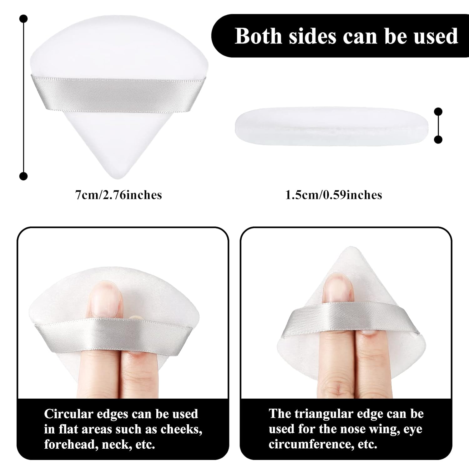 - Diverse usages: our triangle shape powder puffs are suitable for dry and wet cosmetics, such as foundation, blush, loose powder, powder, body powder, concealer and more, easy to apply on the nose or eyes, but if you wear this puff, it could delicately apply your makeup