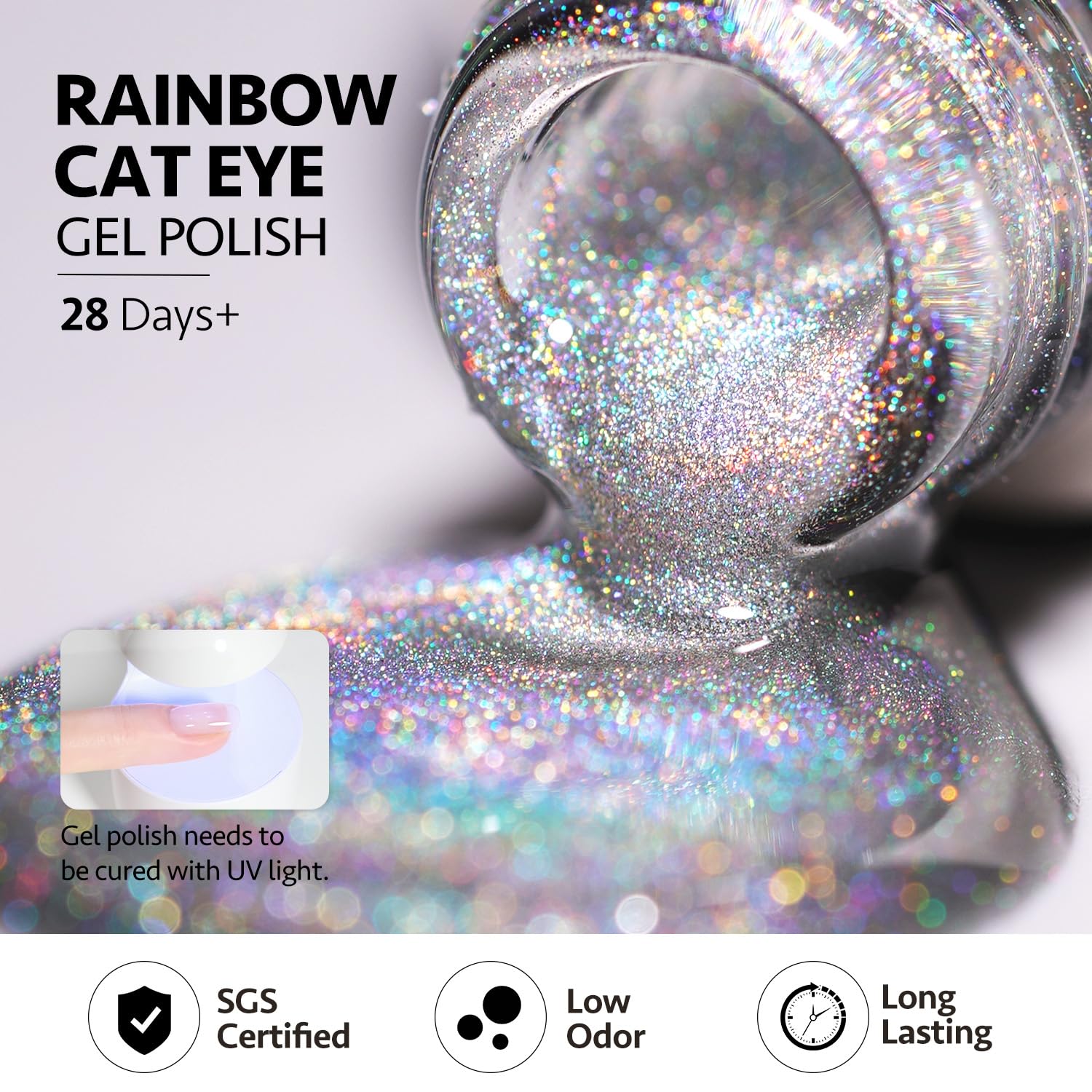 - Included Components : Holographic Gel nail polish, Magnet
