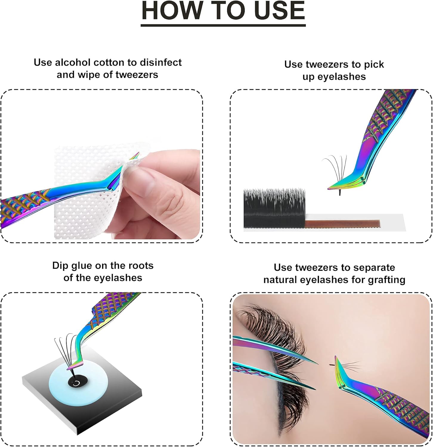 - When to Use Them – Ideal for mega volume, classic, Russian, and hybrid lash applications, these lash extension tweezers fiber grip help you create perfect fans effortlessly. The fine tips ensure a secure hold, reducing lashing time while maintaining precision.