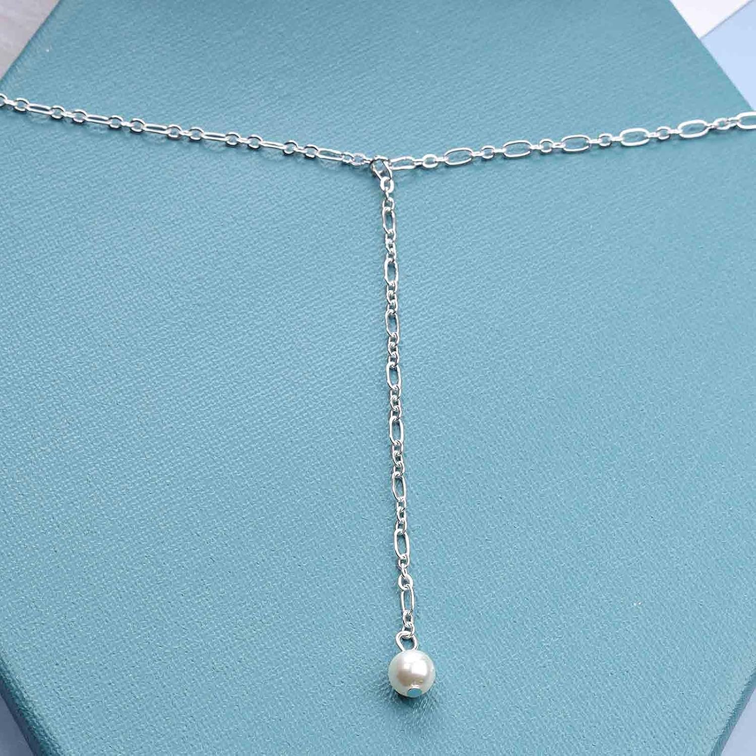 - Silver pearl y lariat necklace chain made of high quality alloy,easy to match clothes.
