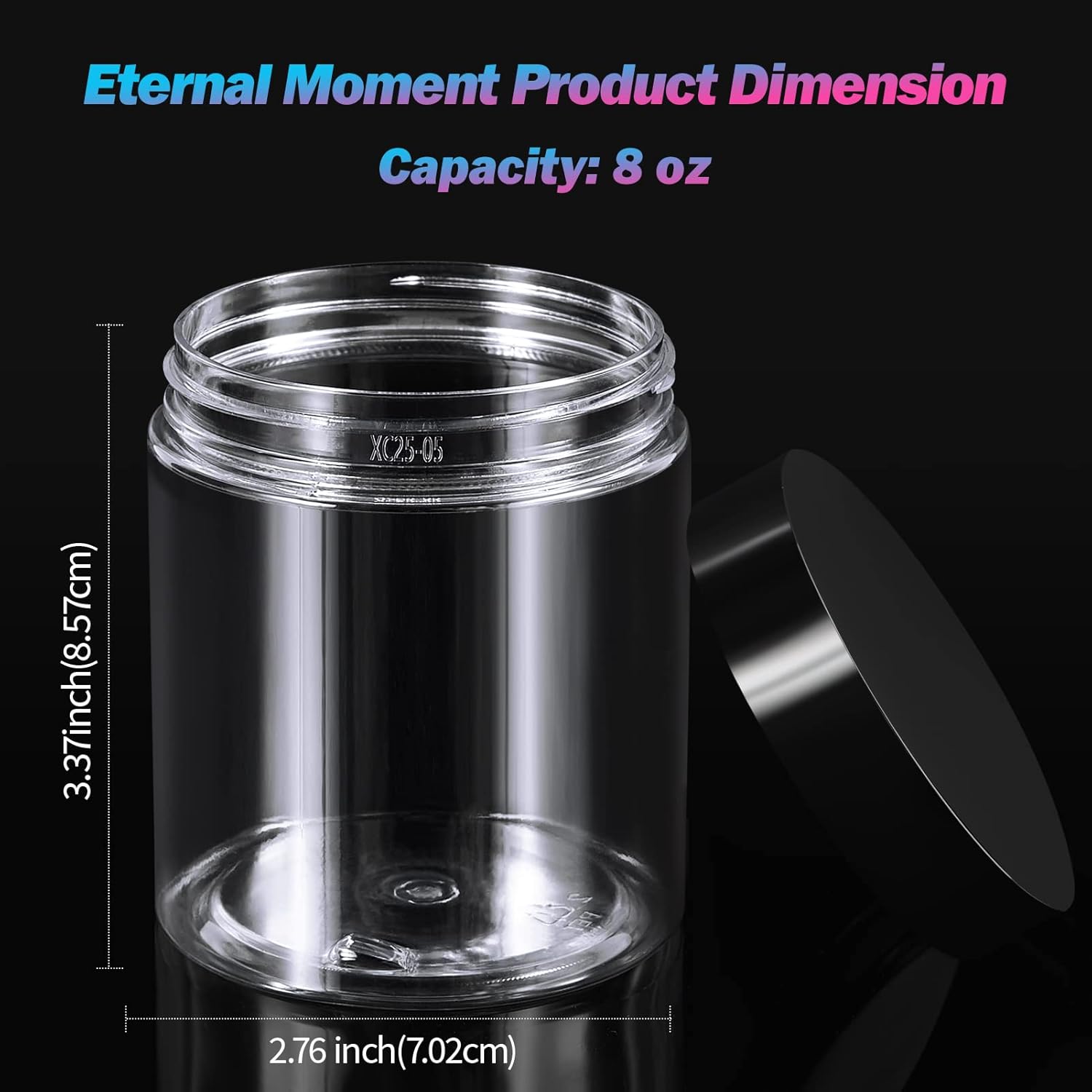 - ★【PERFECT SIZE】: SIZE:2.76 inch diameter by 3.37 inch tall. Capacity: 8 OZ(240ml). Portable to take and fit perfectly into your tote bags, backpack or gym bag. You can take them go anywhere. Eternal Moment cosmetic containers can also be stored on a shelf or displayed to promote a professional ambiance.
