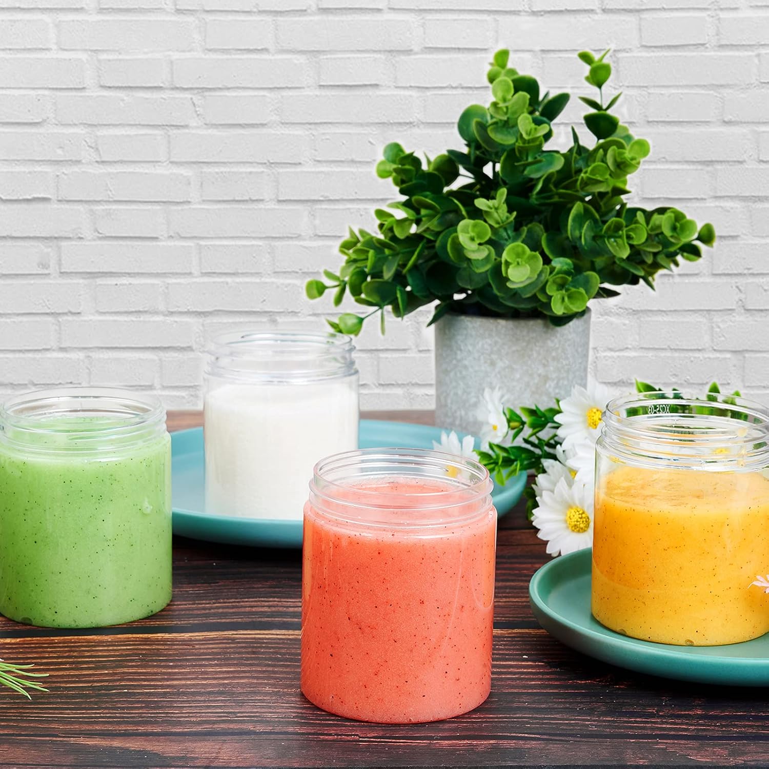 - ★【PREMIUM QUALITY】: Super set of 36 pack 8 oz round clear plastic jars, screw-on lids with foam liners. Made of high-quality PET, plastic sample jars are BPA free, 100% food safe, non-toxic and stable,which makes them excellent for hair products, skin products, cleanser, and other personal care products.