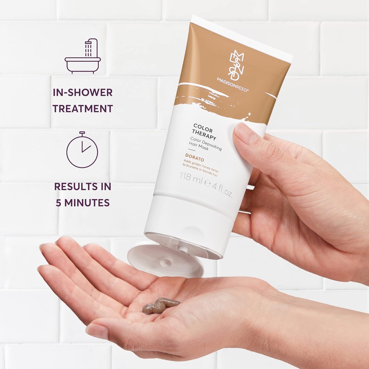 - COLOR DEPOSITING HAIR MASK: Madison Reed Color Therapy in Dorato works best on blonde or brunette hair, as well as highlighted hair, and adds golden honey tones to refresh & enhance color. Not intended for gray coverage.