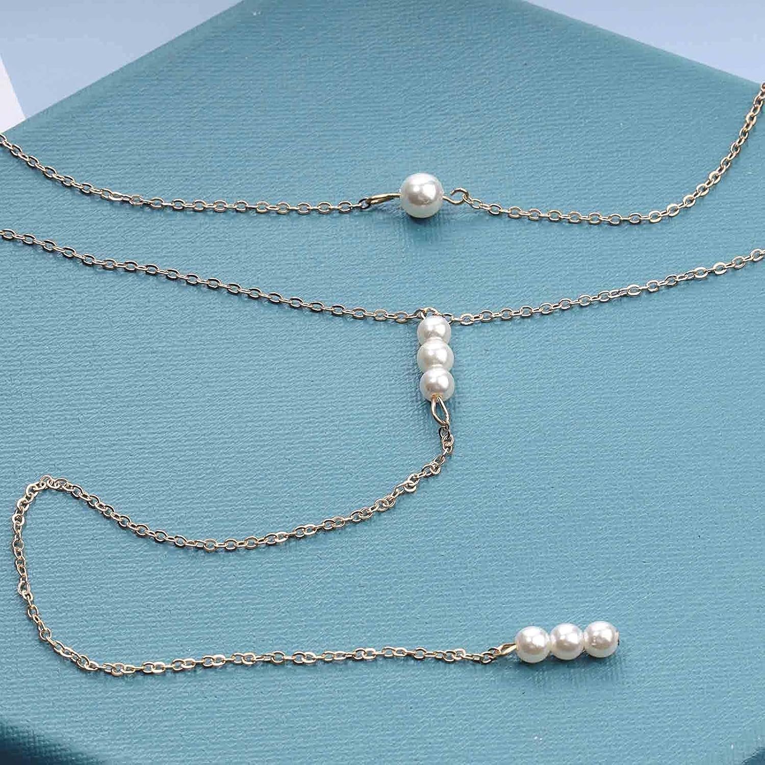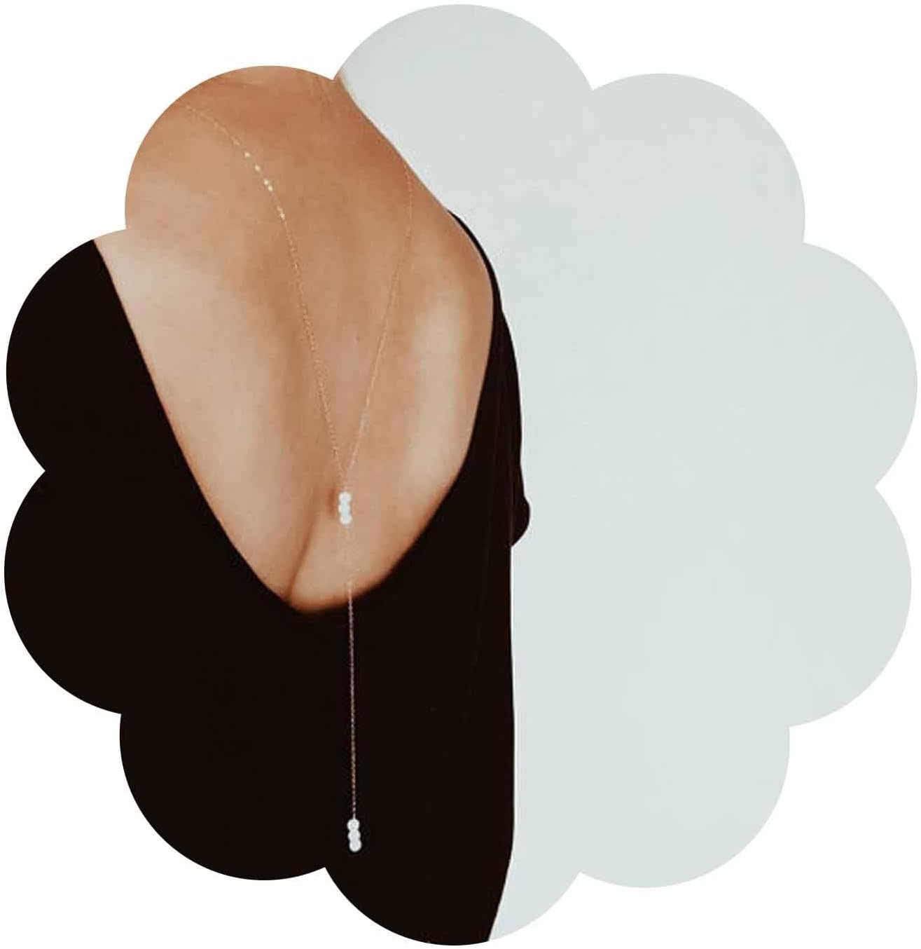 Boho Pearl Back Chain Necklace Gold Backdrop Necklace Body Chain Summer Beach Body Jewelry for Women and Girls Gifts