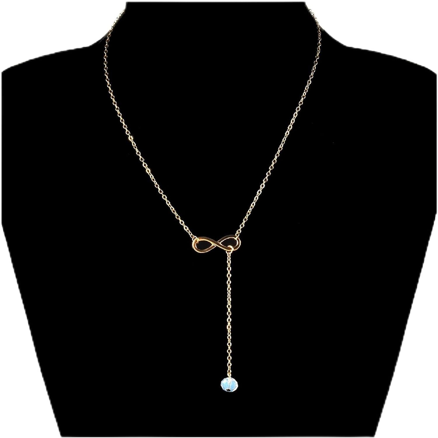 Boho Crystal Infinity Necklace Gold Y Necklace Minimalist Crystal Y Lariat Necklace Chain Jewelry for Women and Girls