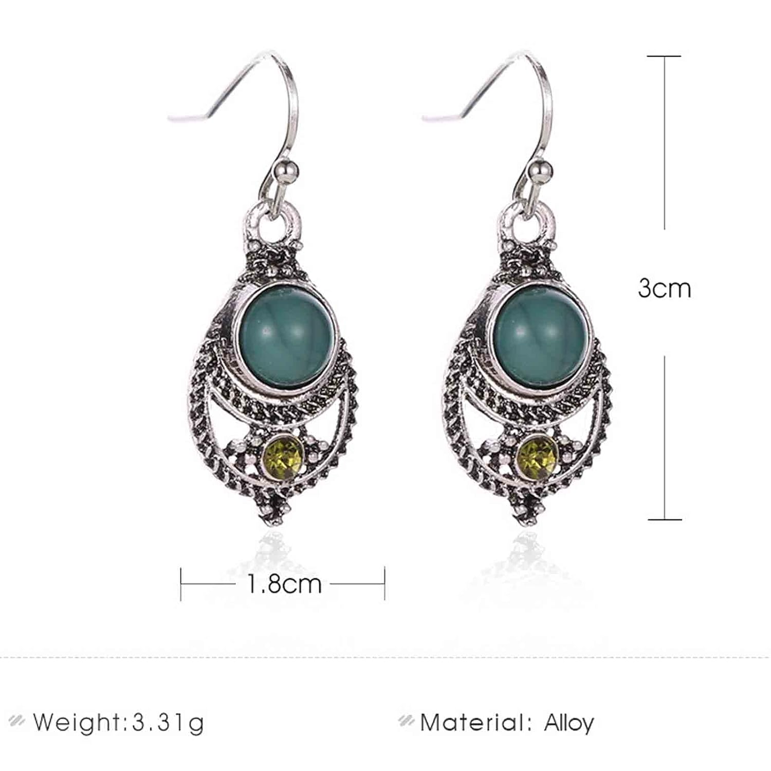 Boho Ethnic Turquoise Drop Earrings Silver Teardrop Turquoise Earrings Gemstone Hook Earrings Retro Drop Dangle Earrings Jewelry for Women and Girls