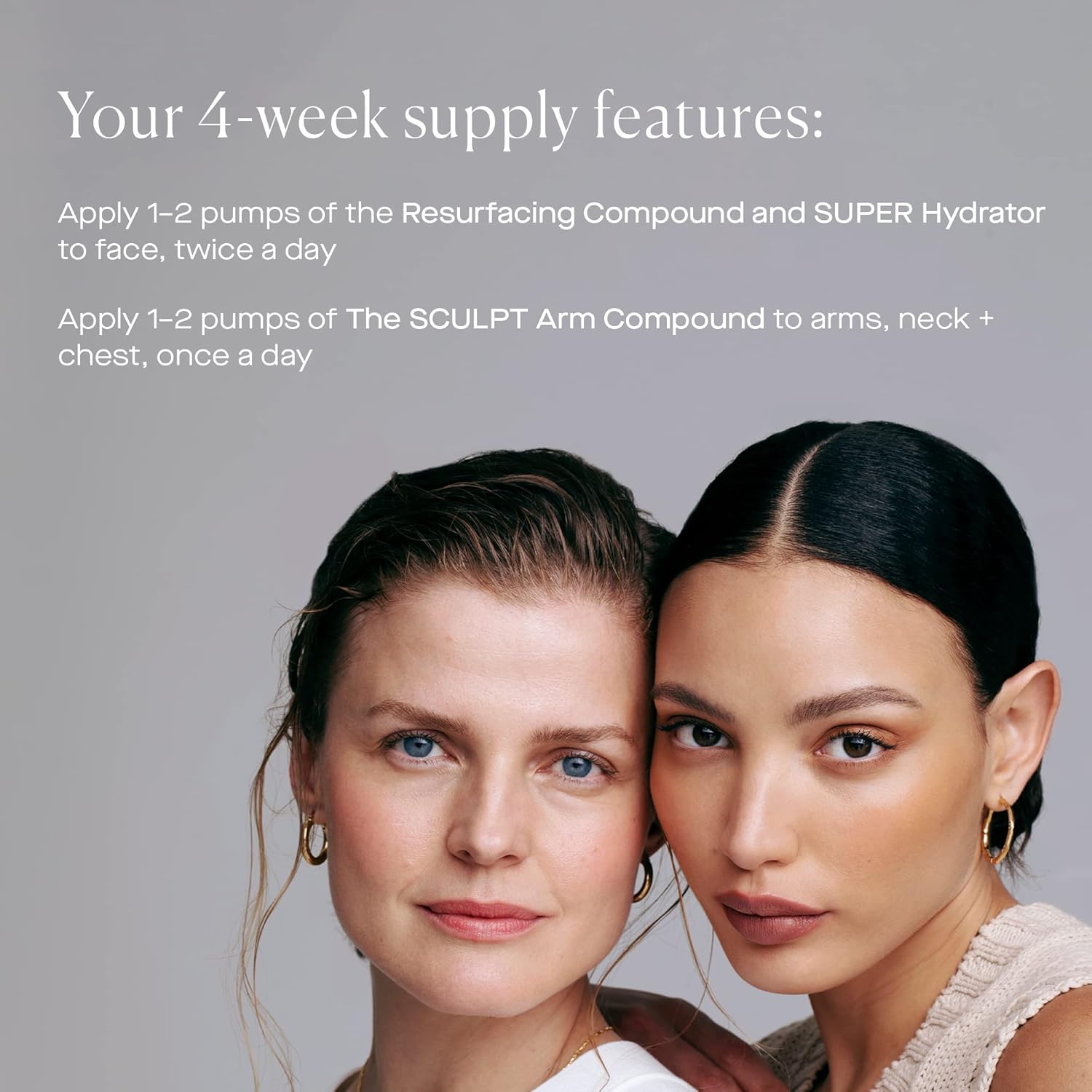 - Our three cult-favorite hero products in an exclusive getaway-ready kit: The essential Travel Trio features the Resurfacing Compound 15ml, SUPER Hydrator 15ml, and SCULPT Arm Compound 50ml.
