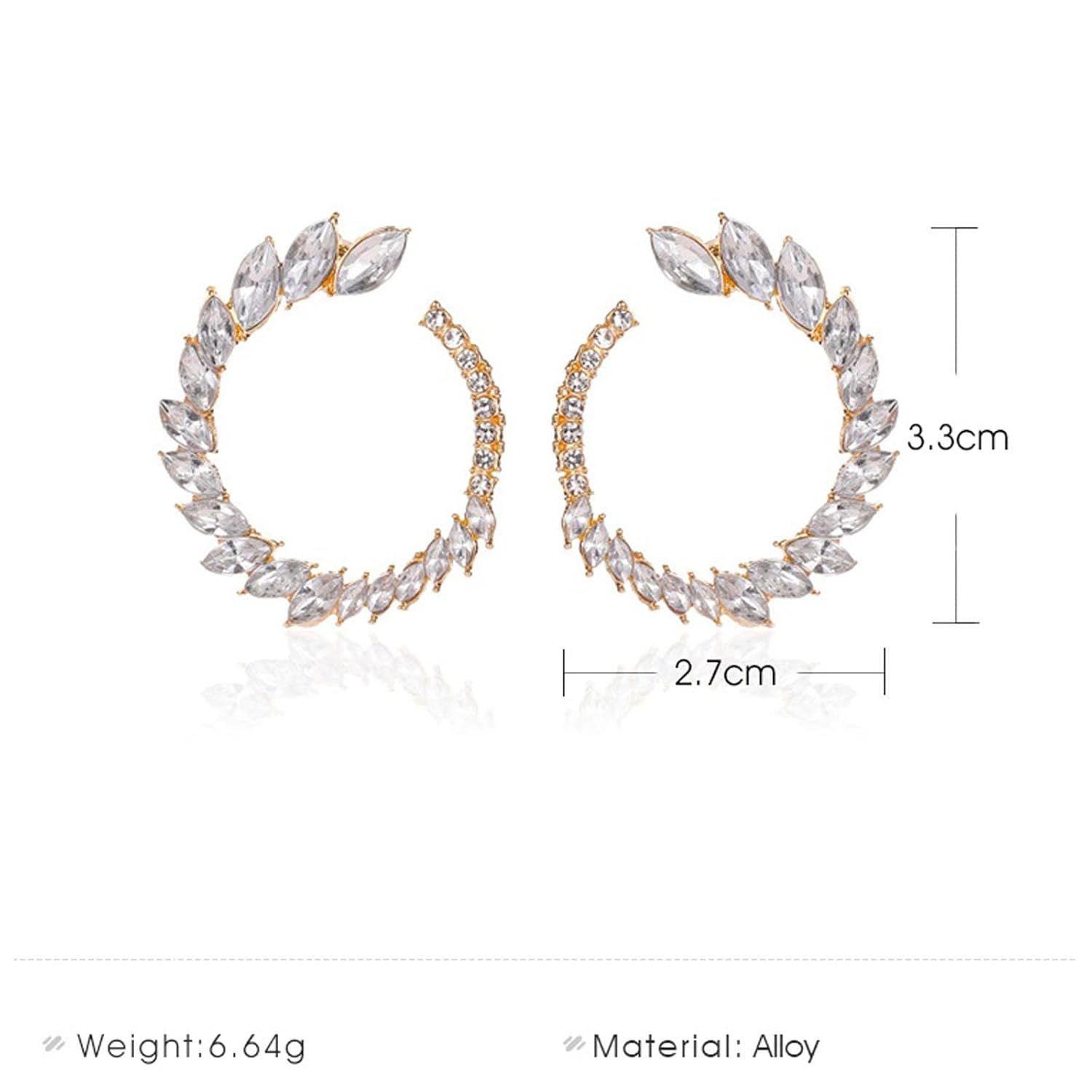 Vintage Rhinestone Hoop Earrings Gold Round Circle Studs Earrings Bright Crystal Earrings Bling Wedding Earrings Jewelry for Women and Girls
