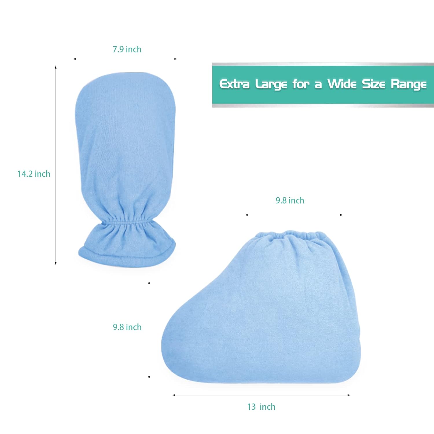 Paraffin Wax Bath Terry Cloth Gloves & Foot Liners, Paraffin Wax Machine Heated SPA Mittens Foot Liners, Thick Heat Hand Feet Treatment Insulated Mitt Spa Feet Cover Great for Men Women (Blue)