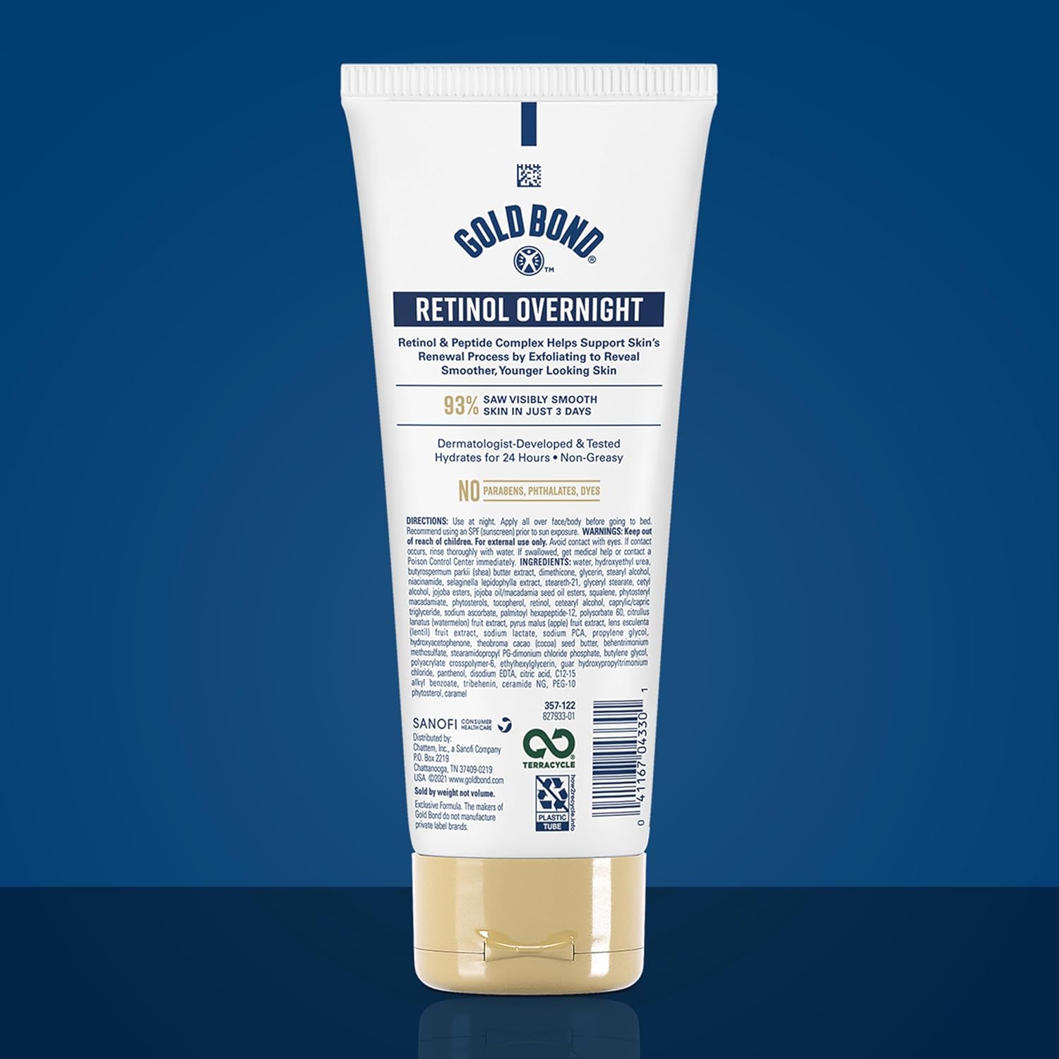 - Contains one (1) 7-ounce tube of Gold Bond Age Renew Retinol Overnight