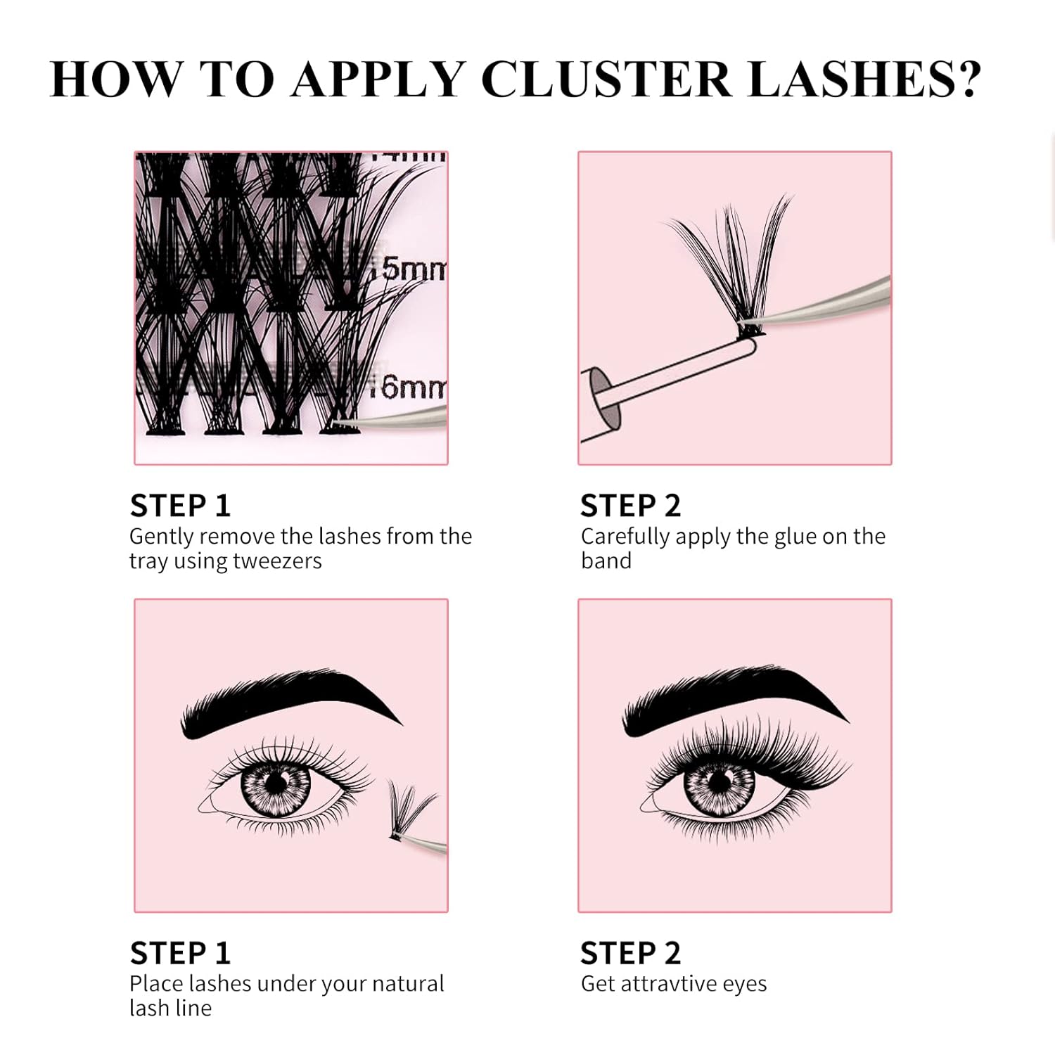 - High-Quality: The soft cotton fine band is not easy to break and fall apart. Super soft, and lightweight. And our cluster lashes can be reused many times with proper care.