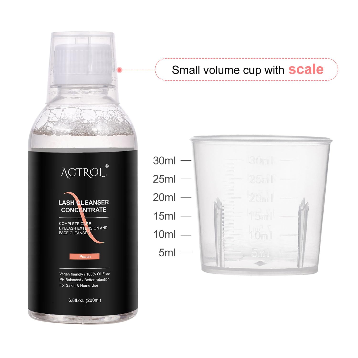 Eyelash Cleanser Concentrate 200ml Peach Professional Lash Shampoo Foaming Cleanser Paraben & Sulfate Free Non-lrritating Wash for Extensions Lashes with Salon Home Care-Makes 40 Bottles