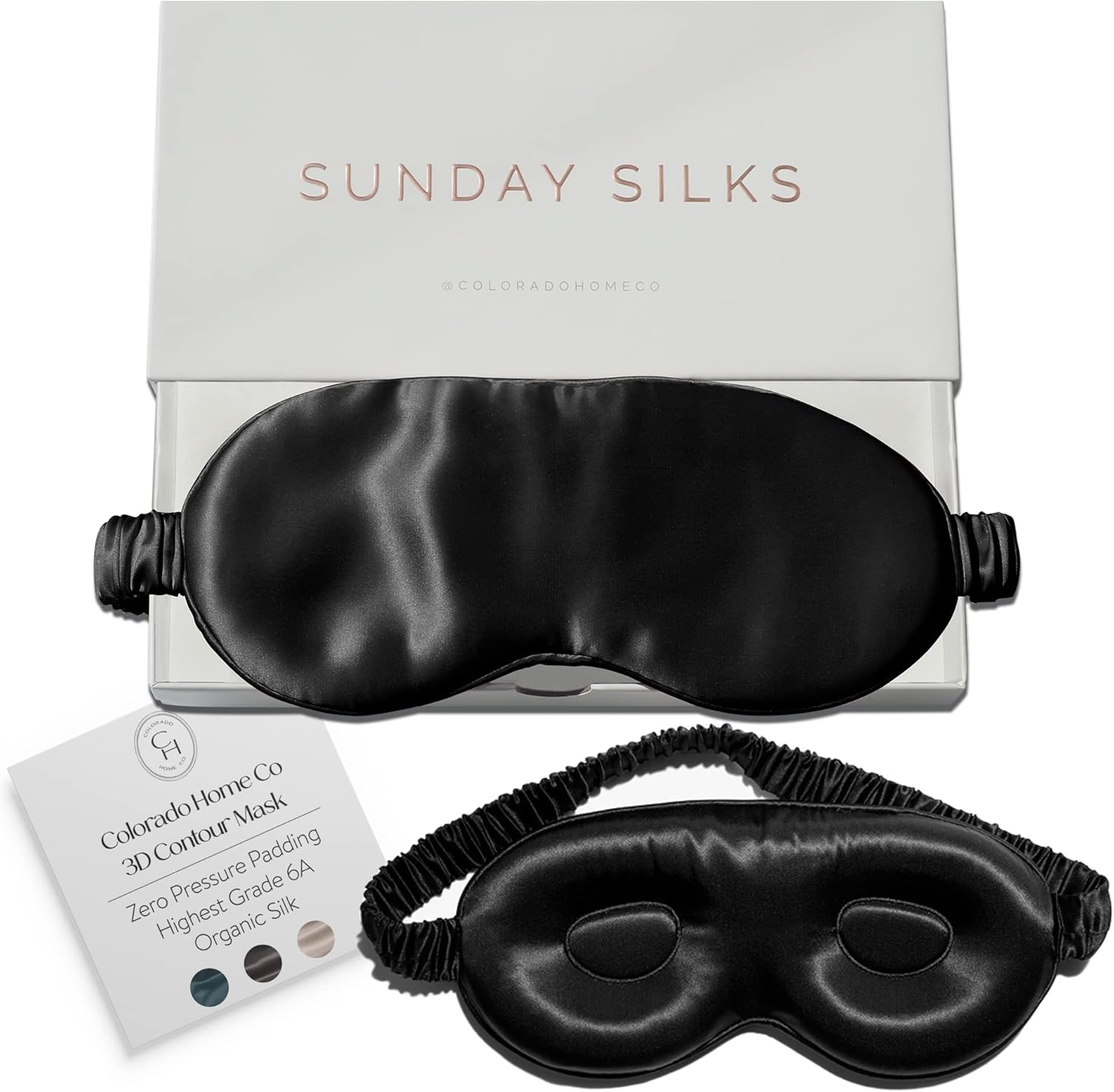 SUNDAYSILKS™ 3D Contoured Silk Sleep Mask | Padded Silk Eye Mask with Eye Cups for Lash Extensions | Blackout, Organic for Women & Men, Perfect for Travel, Slip-Free Deep Sleeping, Antifaz para Dormir