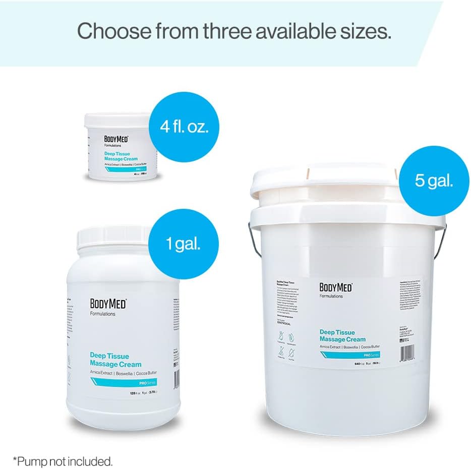 BodyMed Formulations Deep Tissue Massage Cream, 1 gal. – Fragrance-Free, All-Natural Cream for Massage Therapy – Leaping Bunny Certified – with Arnica Extract & Jojoba – Non-Staining, & Paraben Free