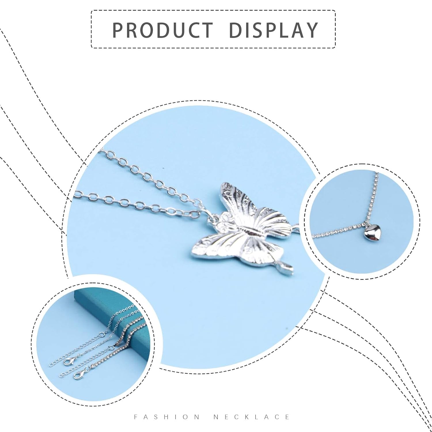 Punk Layered Butterfly Choker Necklace Rhinestone Tennis Chain Necklace Silver Puffy Heart Pendant Necklace Choker Boho Crystal Clavicle Necklace Jewelry for Women and Girls 2 Pcs