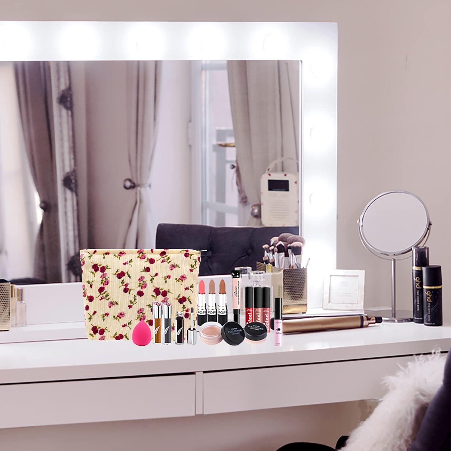 - Multi-Purpose:Use this sturdy pouch to easily pack and carry makeup,jewelry,beauty items,brushes,pencils,small electronic accessories,toiletries,essential oils,medcine,tools or other travel essentials.This cosmetic pouch is the perfect balance between funchtion and style.