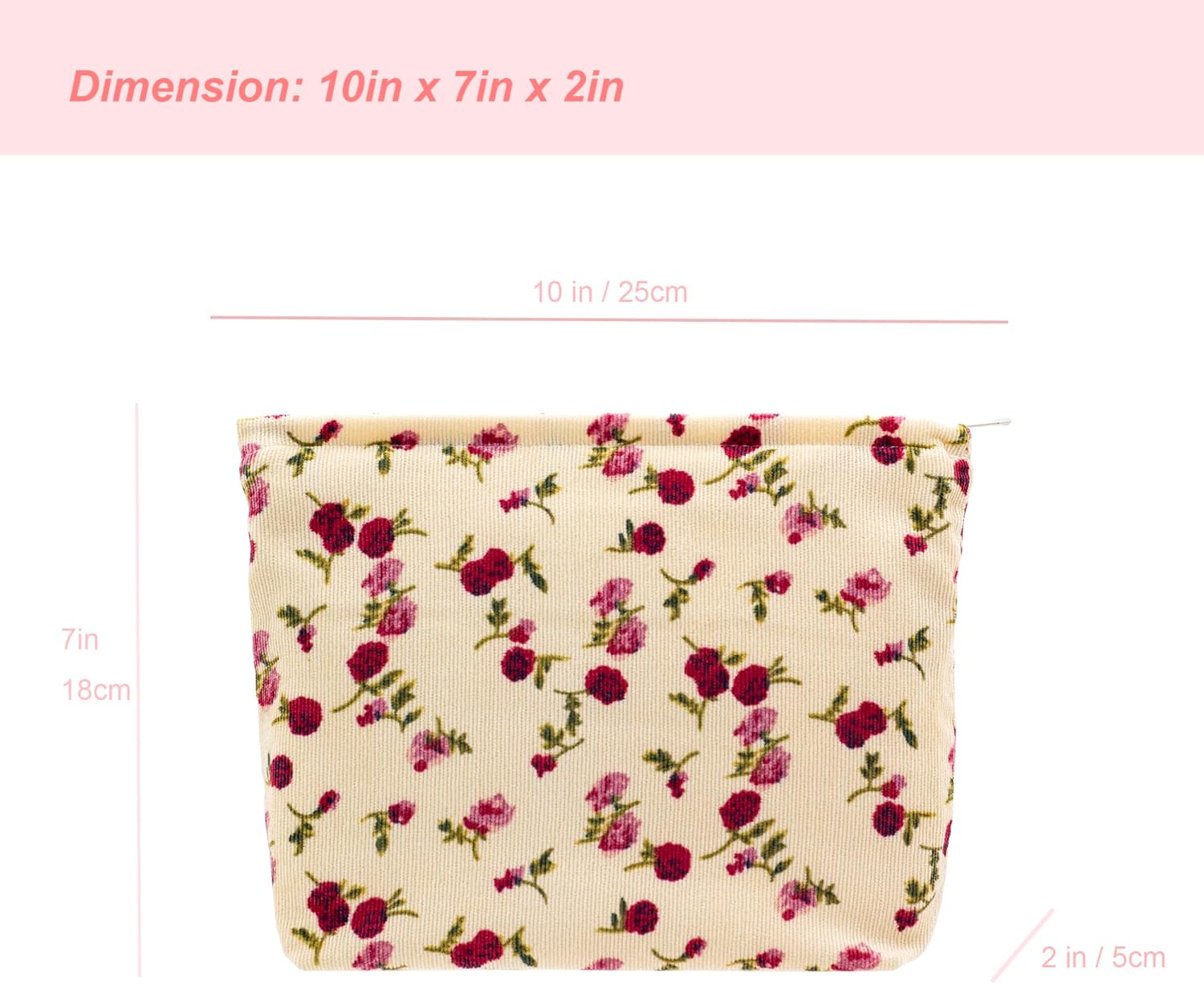 PAZIMIIK Makeup Bag Large Zipper Corduroy Make Up Pouch for Purse Travel Canvas Cosmetic Organizer for Women Brush Storage,Vintage Rose Beige