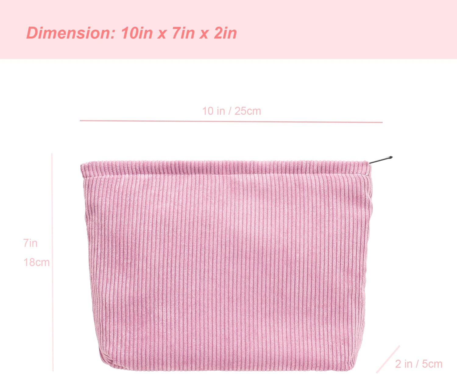 PAZIMIIK Makeup Bag Large Zipper Corduroy Make Up Pouch for Purse Travel Canvas Cosmetic Organizer for Women Brush Storage,Pink