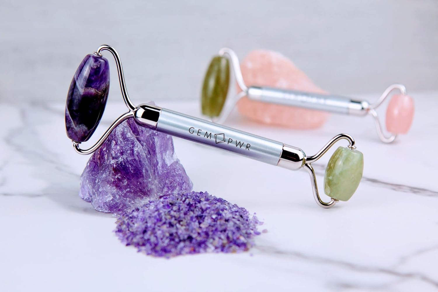 - AMETHYST + JADE DUAL HEAD 2-IN-1 FACIAL ROLLER: No need to buy two rollers as this one offers premium construction and two high-quality gemstones to calm inflammation, brighten your complexion, boost blood flow, and stimulate lymphatic drainage.