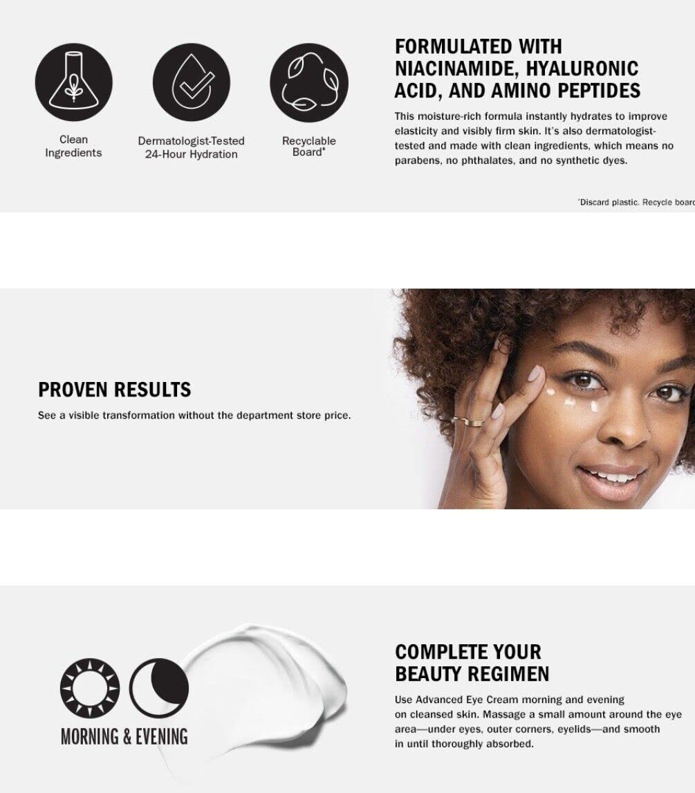 - Helps visibly improve: Deep wrinkles, Crow's feet, Sagging, Uneven Texture, and Moisture Loss