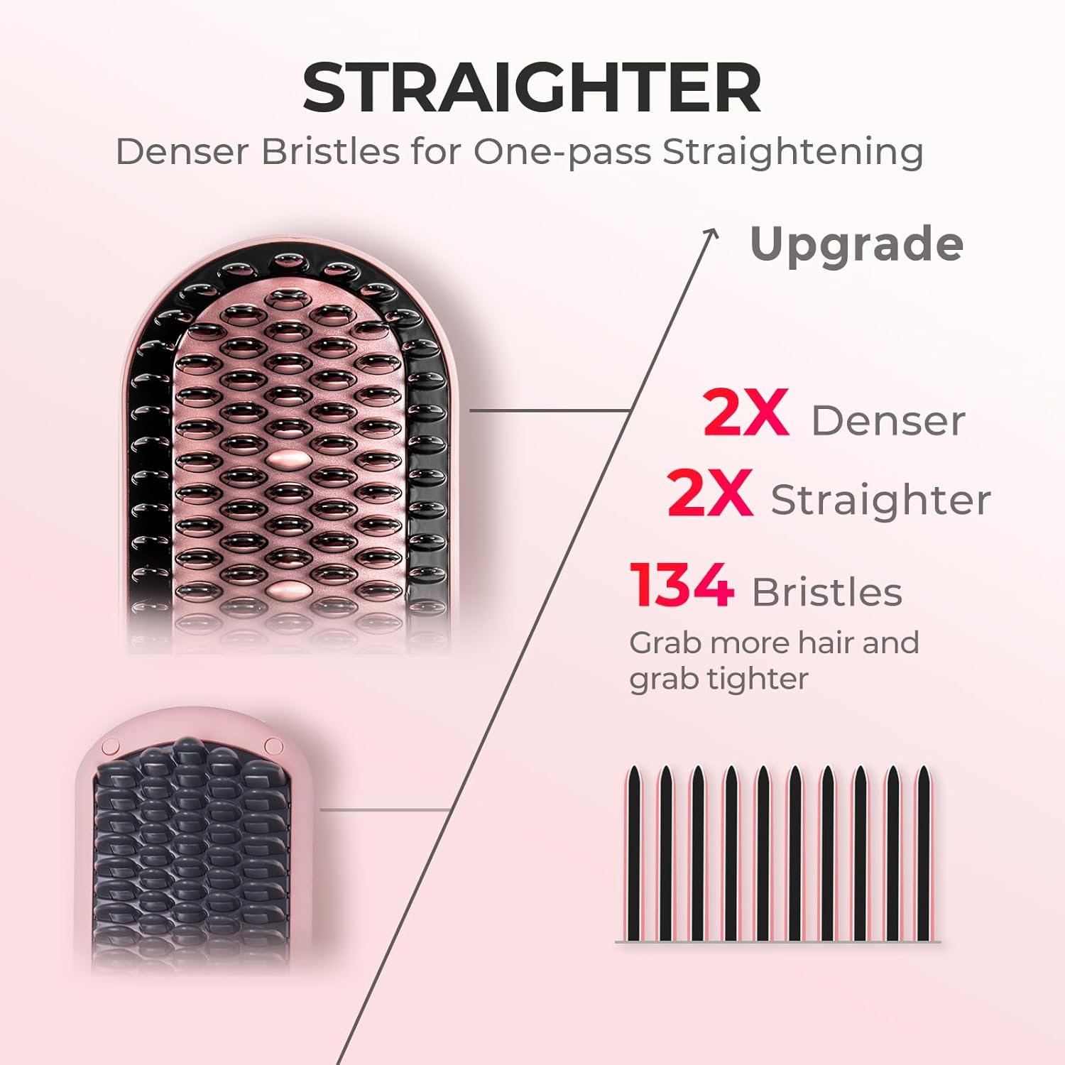 TYMO Hair Straightener Brush - Upgraded Ionic Plus Straightening Brush with Dense Bristles, 16 Temps, Dual Voltage | Ceramic Hot Comb for Women | Flat Iron for Thick Curly Hair, Pink