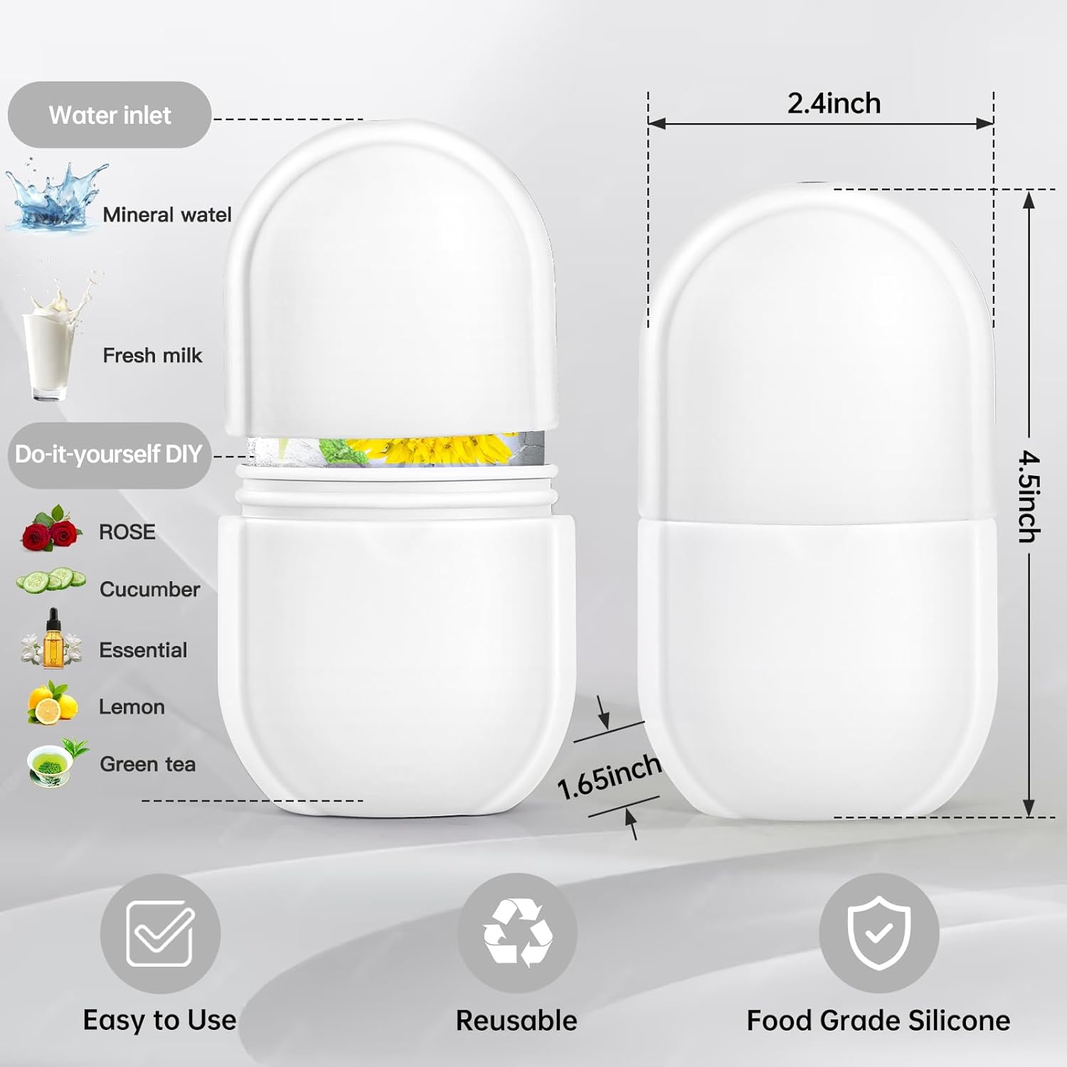 - đăReusable FDA Grade Silicone ăThis refillable silicone cube can be used multiple times and is developed with durable materials, which can save you money. In order to obtain real skin-lifting effects, customize the formula according to your specific skin needs, such as lemonade for whitening, green tea for inflammation, cucumber water for reducing swelling, and coconut milk for anti-aging.