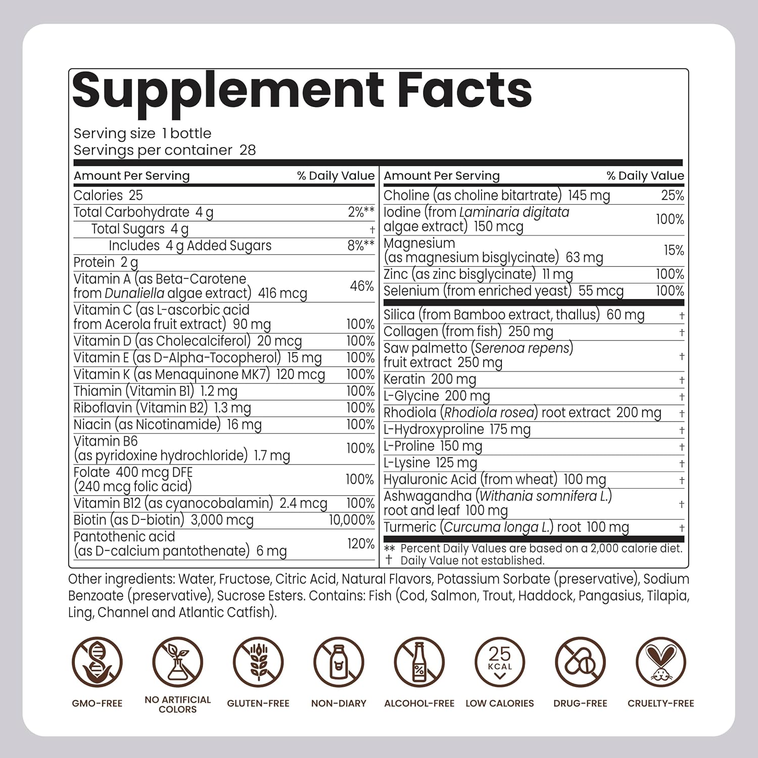 Liquid Hair Growth Supplement with Biotin. Ready-to-Drink. Clinically Proven for Stronger and Shinier Hair, Less Shedding, + Scalp Coverage. Anti-Hair Loss. 28 Servings Ultimate Hair Booster