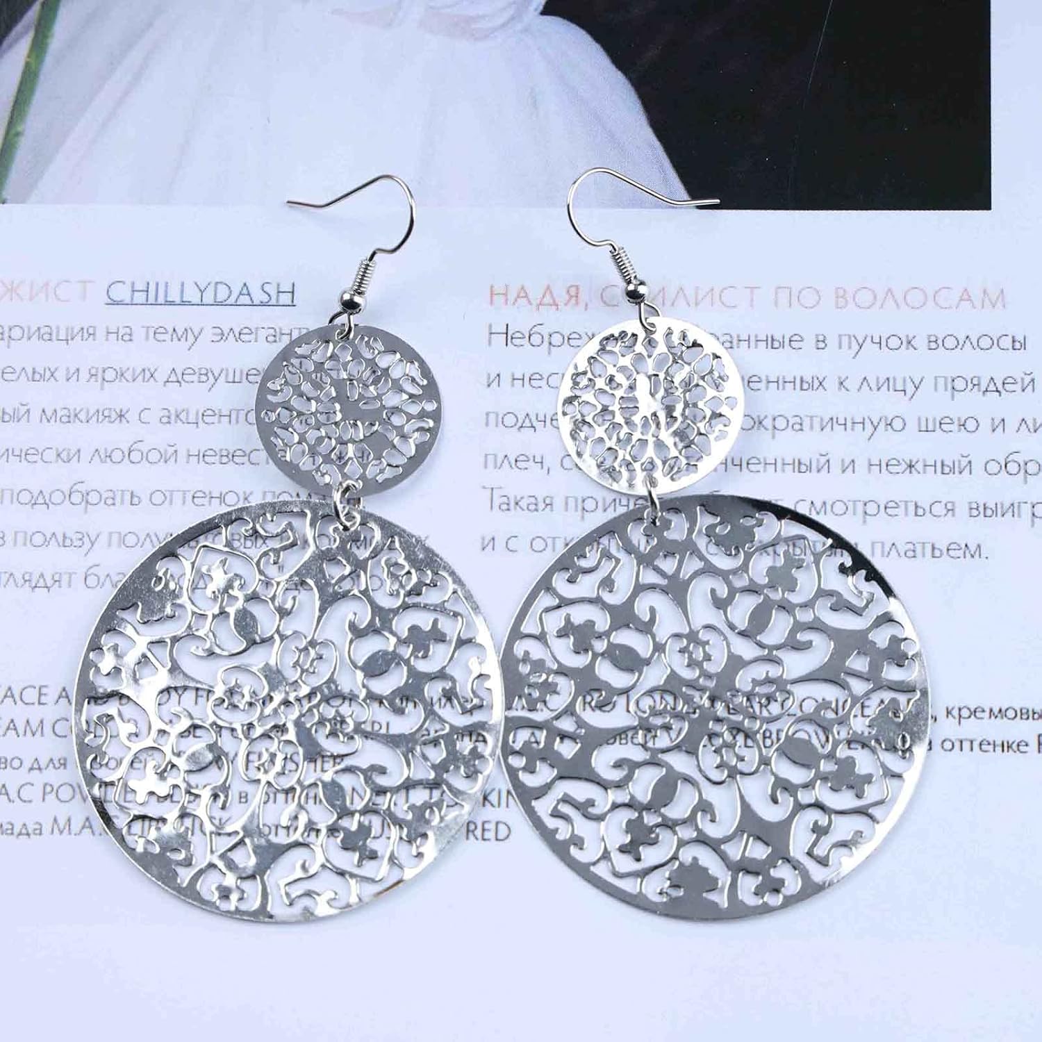 Filigree Hollow Disc Dangle Drop Earrings Boho Gold Ethnic Carved Flower Earrings Double Round Disc Drop Earrings Statement Hook Earrings Wedding Bridesmaid Jewelry for Women and Girls