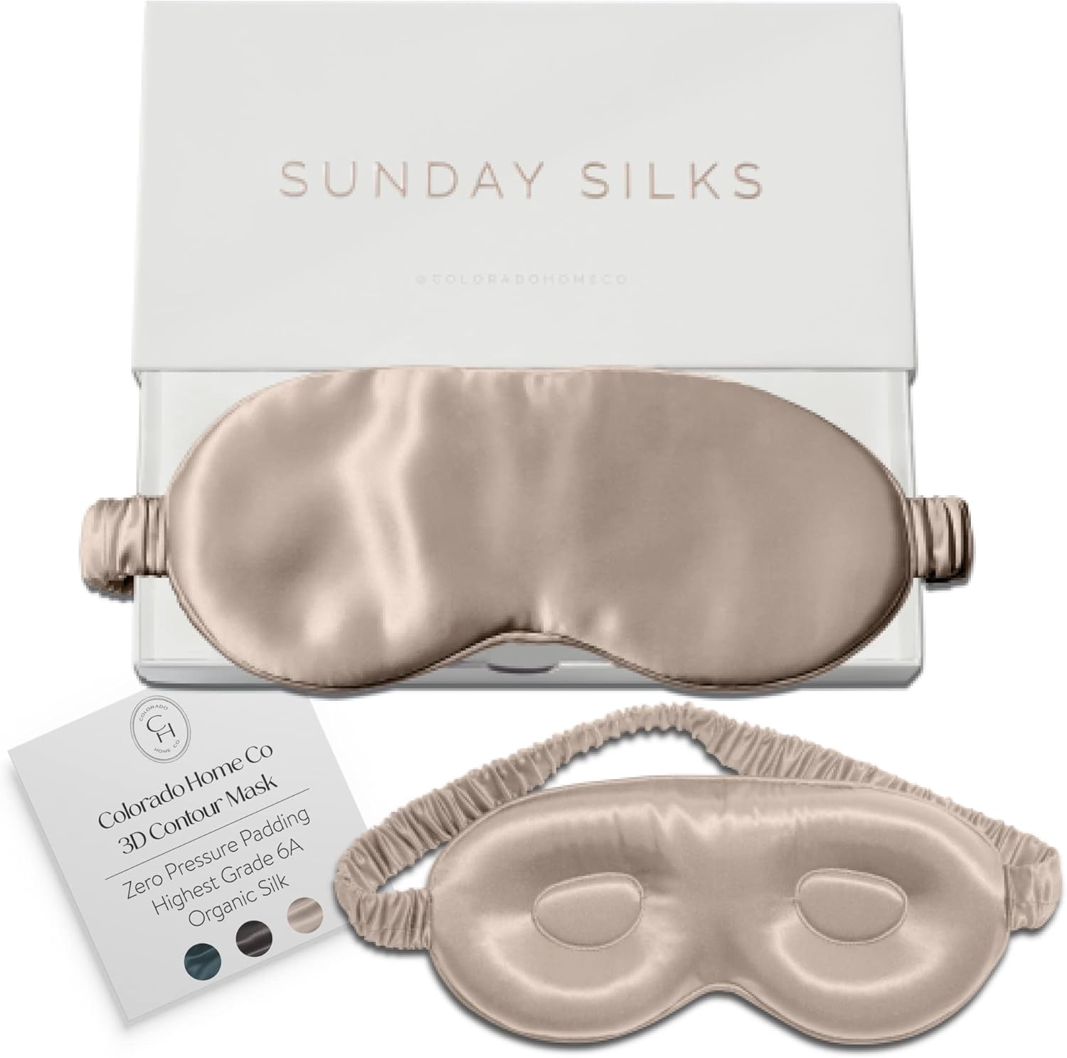 SUNDAYSILKS™ 3D Contoured Silk Sleep Mask | Padded Silk Eye Mask with Eye Cups for Lash Extensions | Blackout, Organic for Women & Men, Perfect for Travel, Slip-Free Deep Sleeping, Antifaz para Dormir