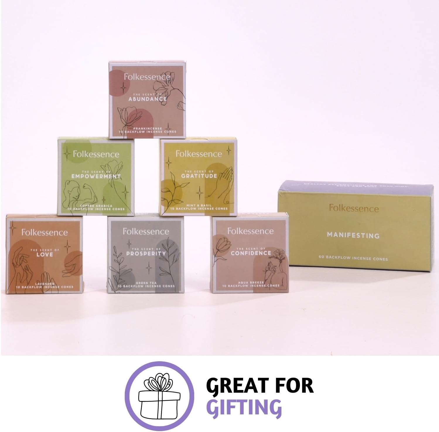 Folkulture Backflow Incense Cones for Waterfall | Set of 6 Waterfall Incense Cones for Gifts for Her | Aqua Breeze, Mint & Basil, Lavender, Green Tea Inscents-Cones (Manifesting)