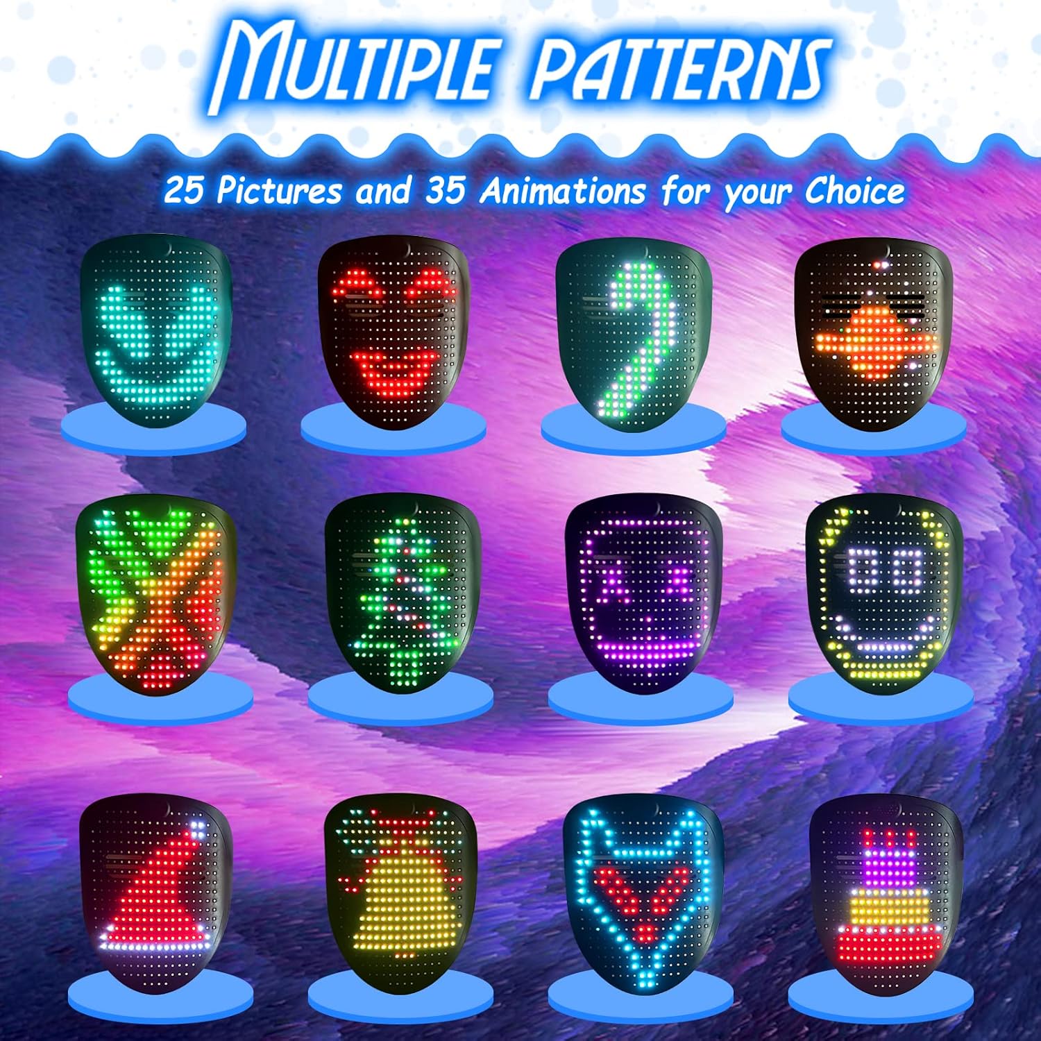 - Innovative LED Mask with Sound Effects: This upgraded mask is truly a design of playfulness and innovation, as it now comes equipped with 10 exciting sound effects that perfectly complement its dynamic visuals. Whether you prefer static or dynamic images, this mask has got you covered. Its vibrant colors and lively sounds will transport you to a world of pure joy and imagination. Get ready to experience a whole new level of fun an
