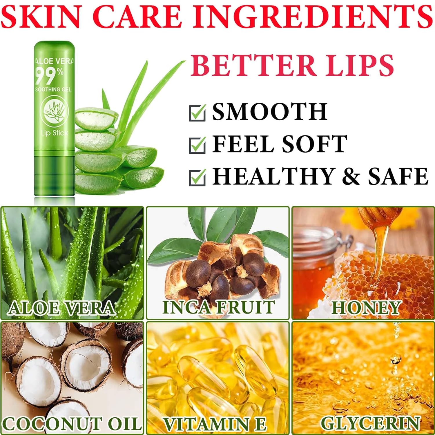 - đăNatural IngredientsăColor changing lipstick is rich in natural plant ingredients such as aloe vera, Inca seed oil, coconut oil, etc. It is more gentle and friendly to your lips, and can be used by all people.
