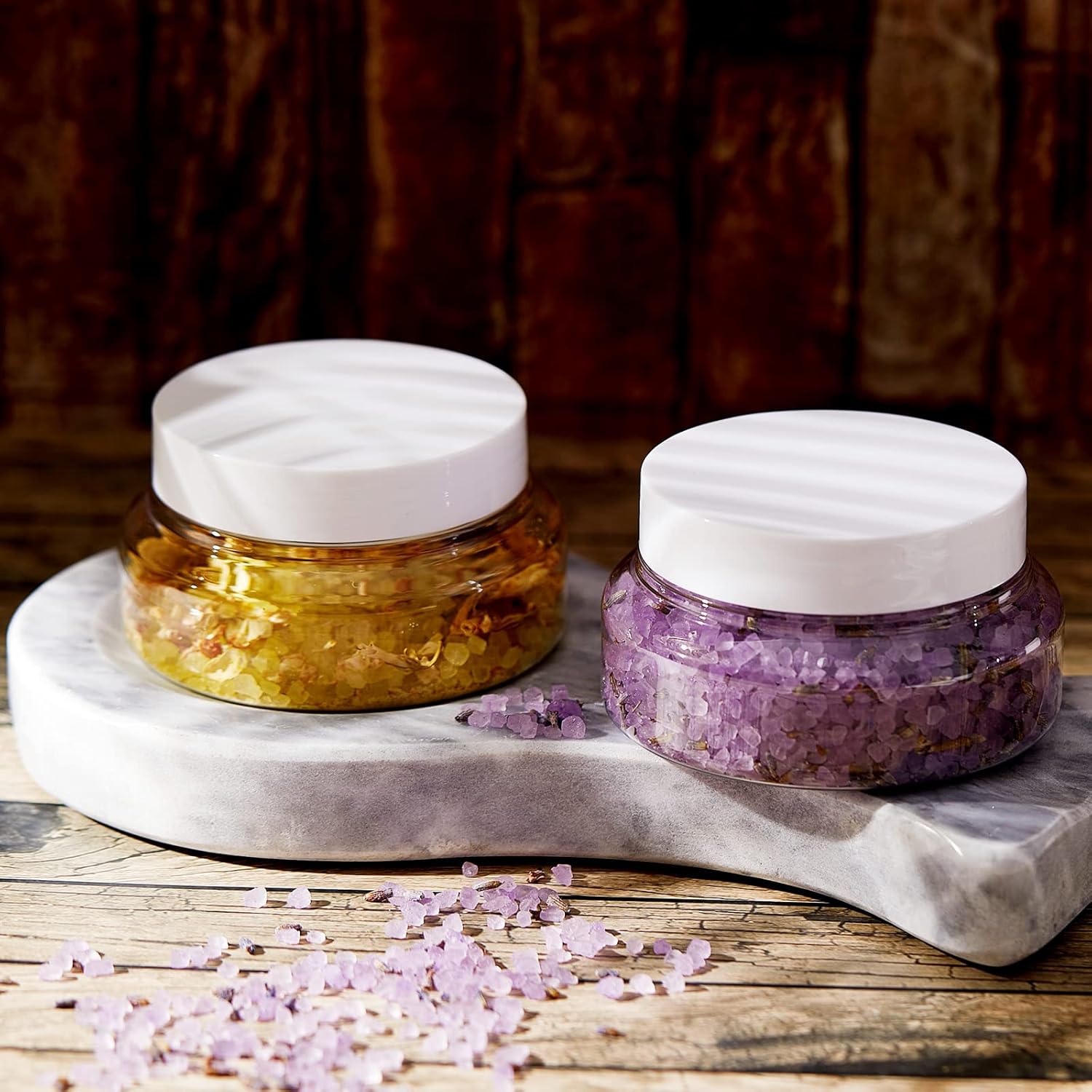 Tessco 24 Pack Plastic Jars with Lids Labels Empty Clear Plastic Jars Round Refillable Cosmetic Containers Body Butter Containers Bulk Sugar Scrub Bottle for Make Up(5 oz,White)
